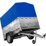 Jednonápravový přívěs na pružinách 264x125 UNITRAILER GARDEN 264/R KIPP s bočnicemi BIS, rámem H-0 a modrou plachtou
