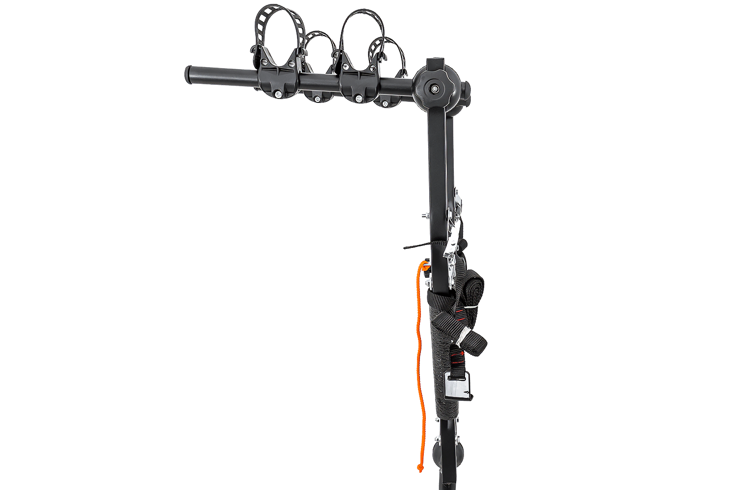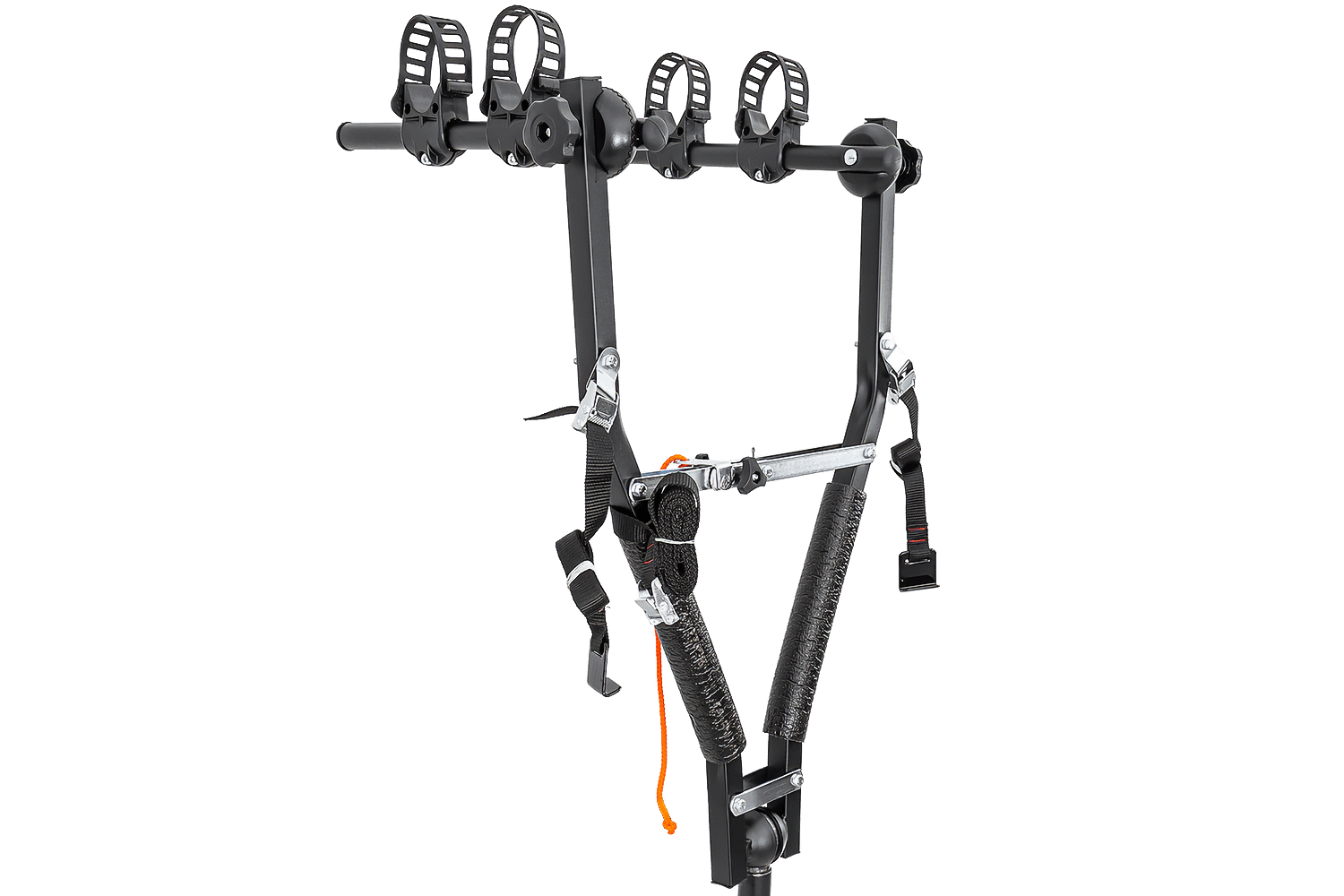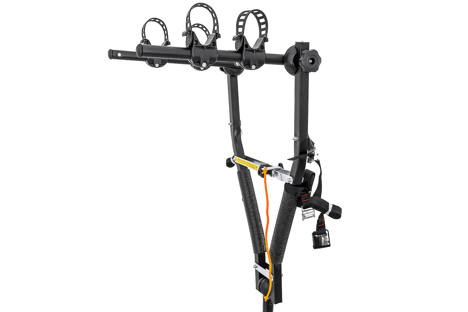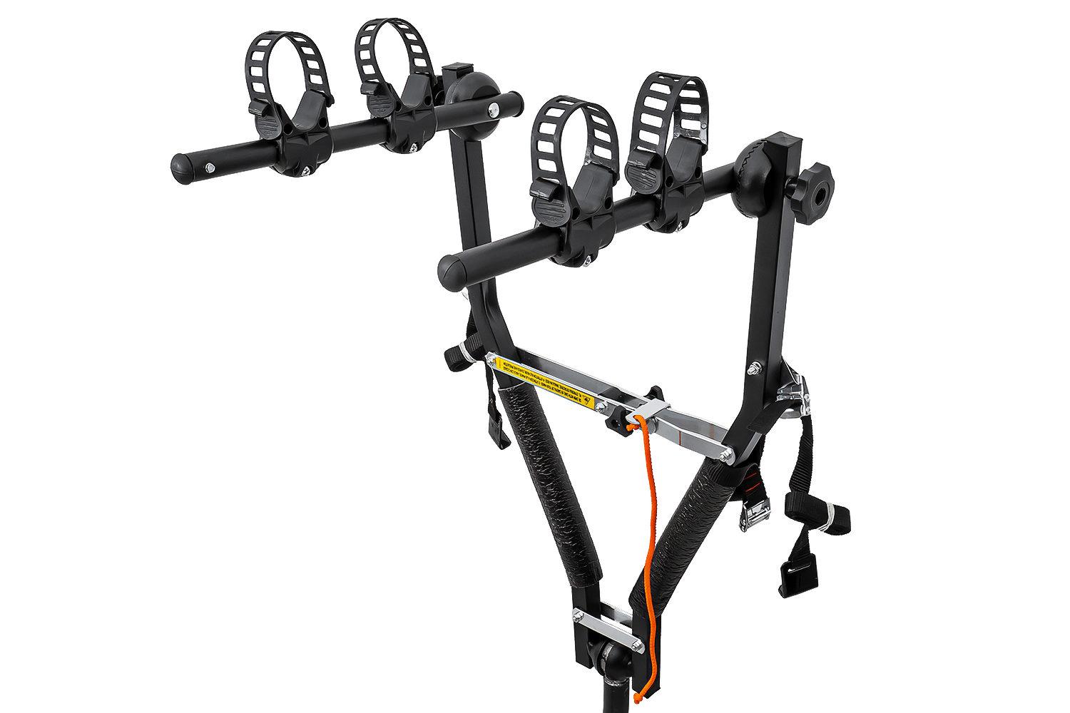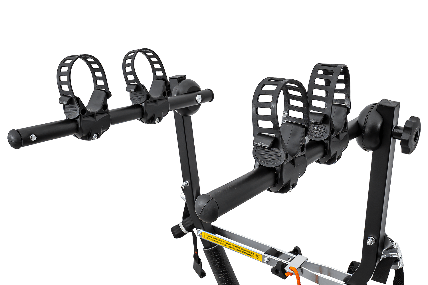 Hlavní výhodou tohoto nosiče je jeho promyšlený systém uchycení kol. Každé kolo je bezpečně uloženo ve svém držáku a zajištěno odolným, nastavitelným gumovým popruhem . Tato funkce umožňuje efektivně přepravovat kola s širokými i úzkými rámy.