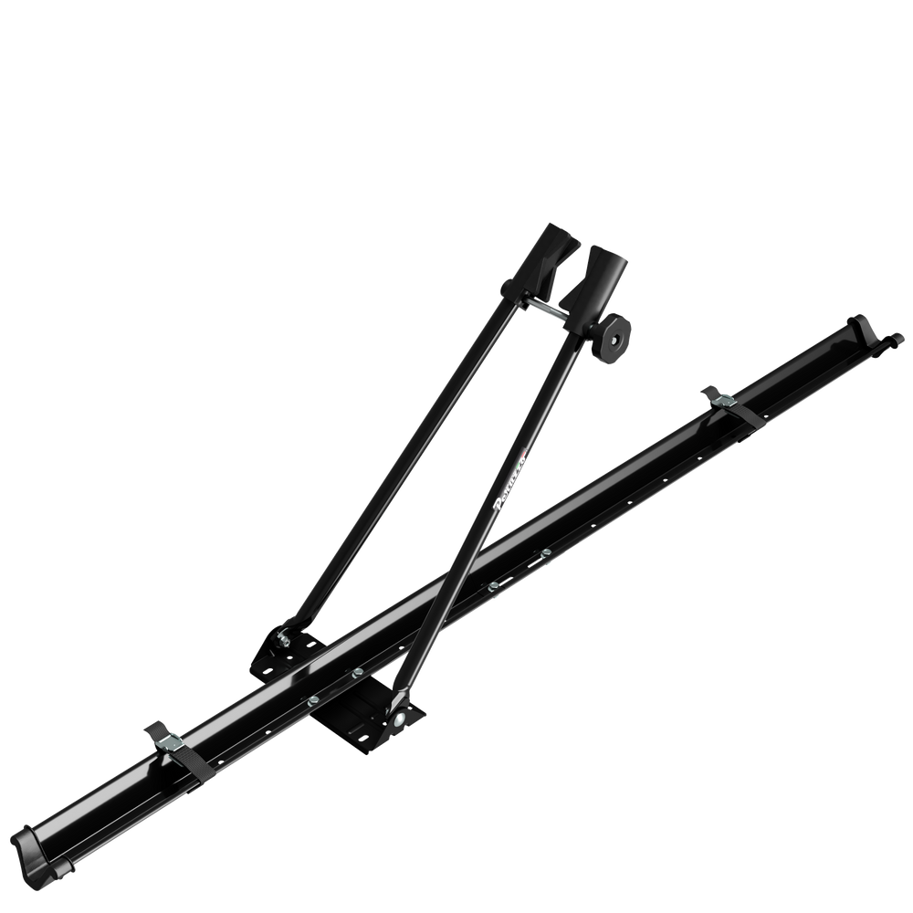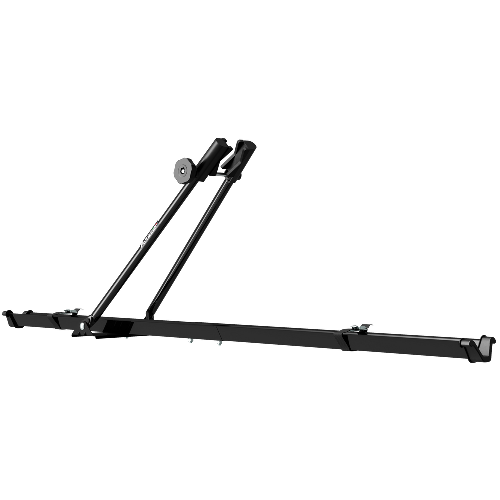 Tento nosič zajišťuje kolo ve třech bodech – na rámu a na kolech. Nosič je vybaven praktickým zamykacím mechanismem, který umožňuje zablokování rámu jedním pohybem. Hluboká drážka usnadňuje montáž, díky čemuž je kolo stabilnější během montáže i jízdy. Pevná ocelová konstrukce zajišťuje stabilitu a bezpečnost . Sada obsahuje popruhy pro zajištění kol kola.