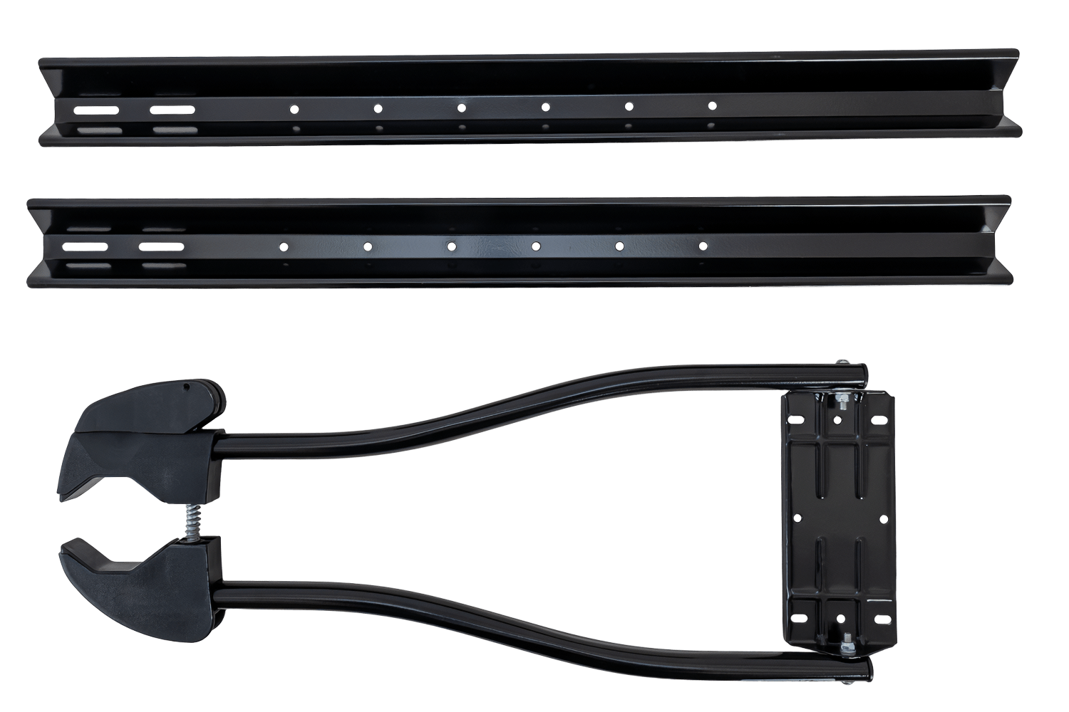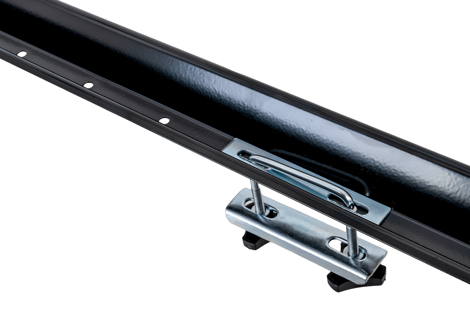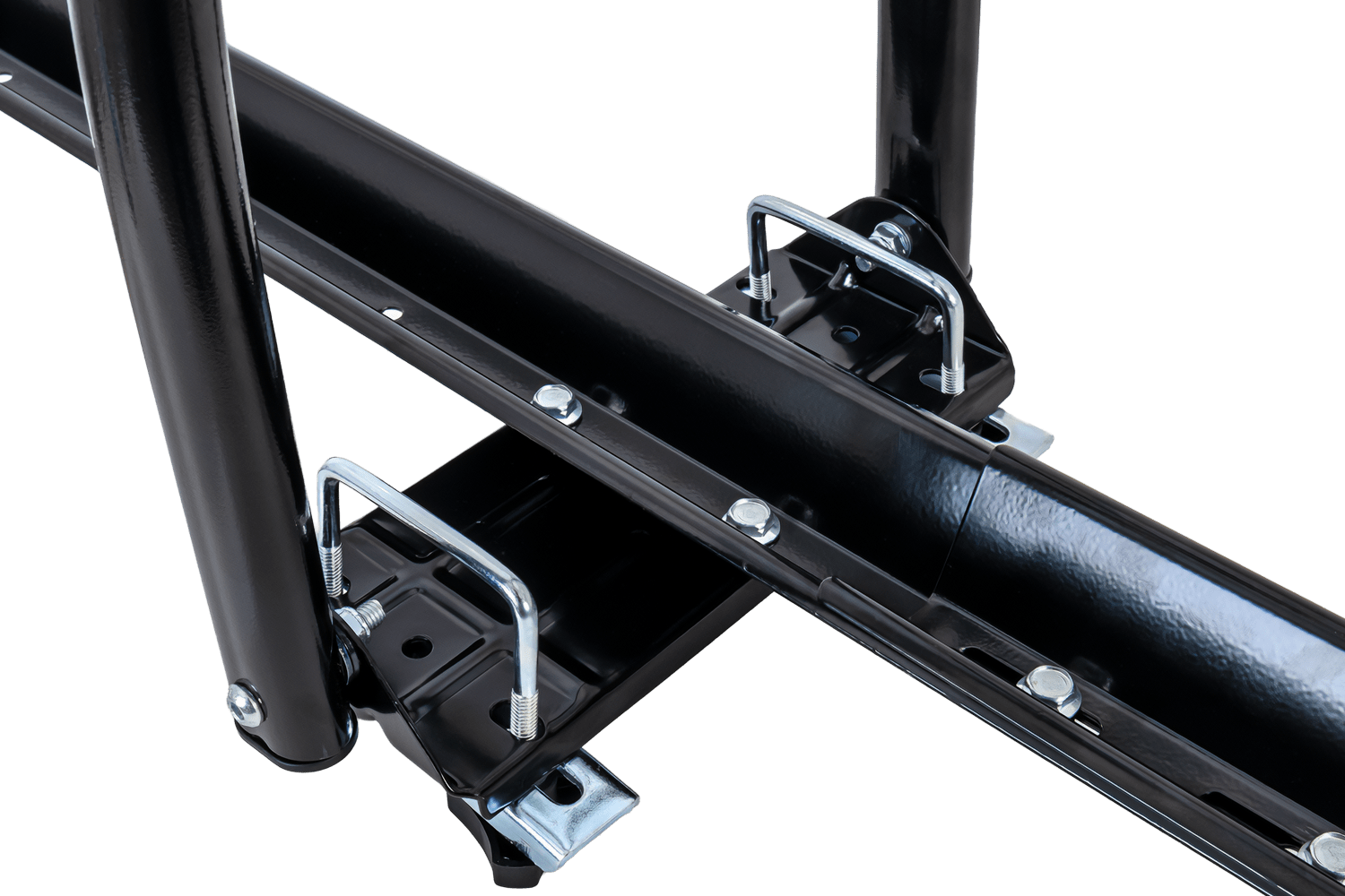Držák se připevňuje ke střešním nosičům pomocí přiložených svorek (U-šroubů) kompatibilních s nosiči (hliníkovými a ocelovými) do šířky 59 mm .