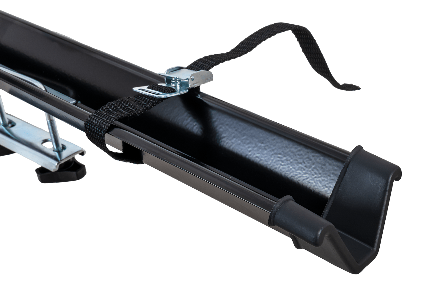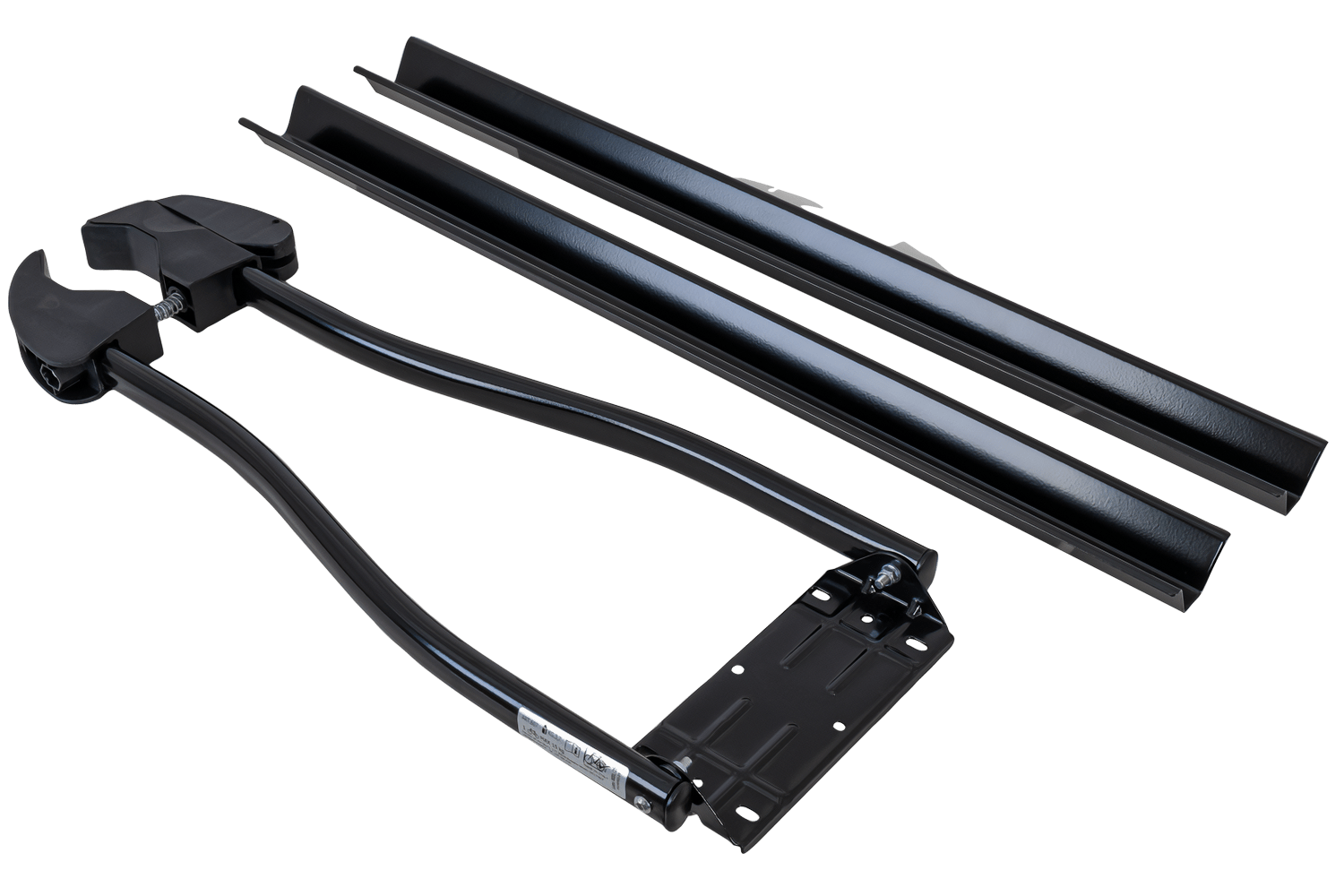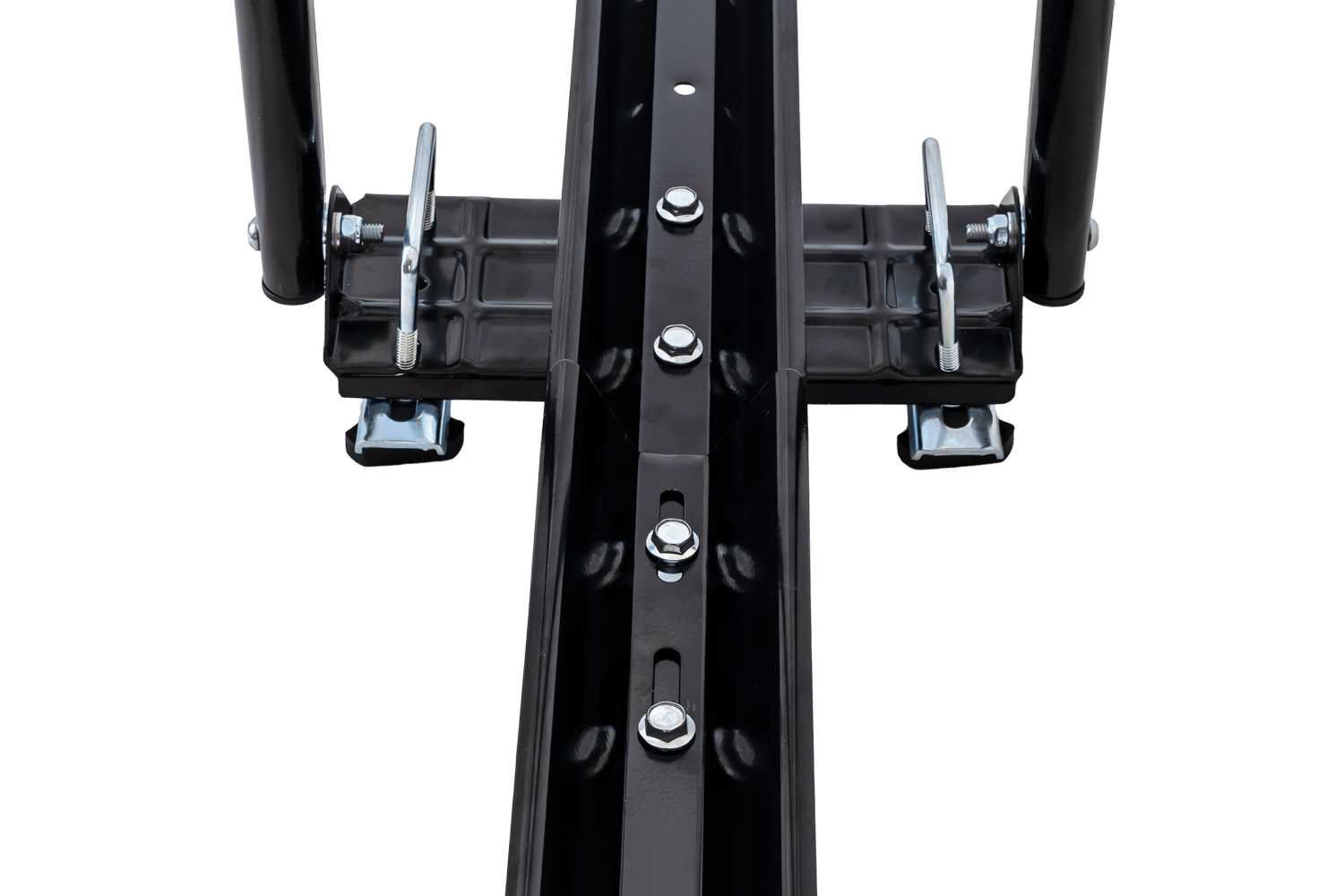 Držák se připevňuje ke střešním nosičům pomocí přiložených svorek (U-šroubů) kompatibilních s nosiči (hliníkovými a ocelovými) do šířky 59 mm .
