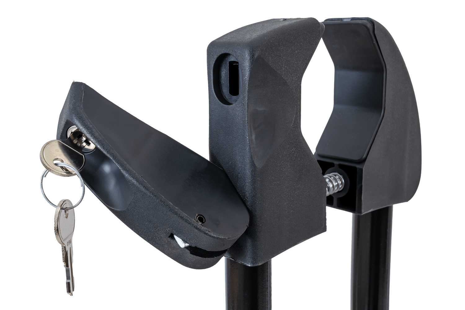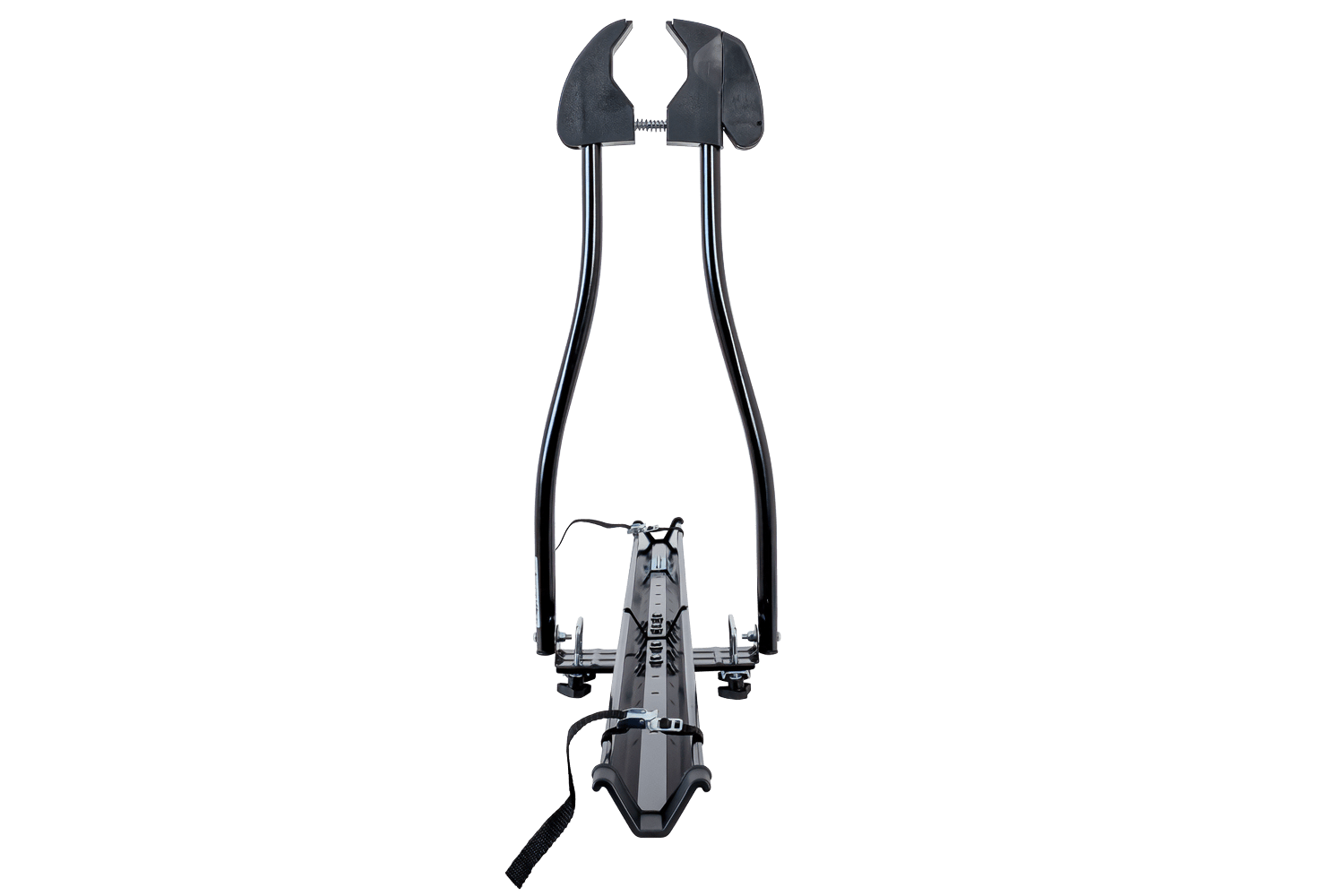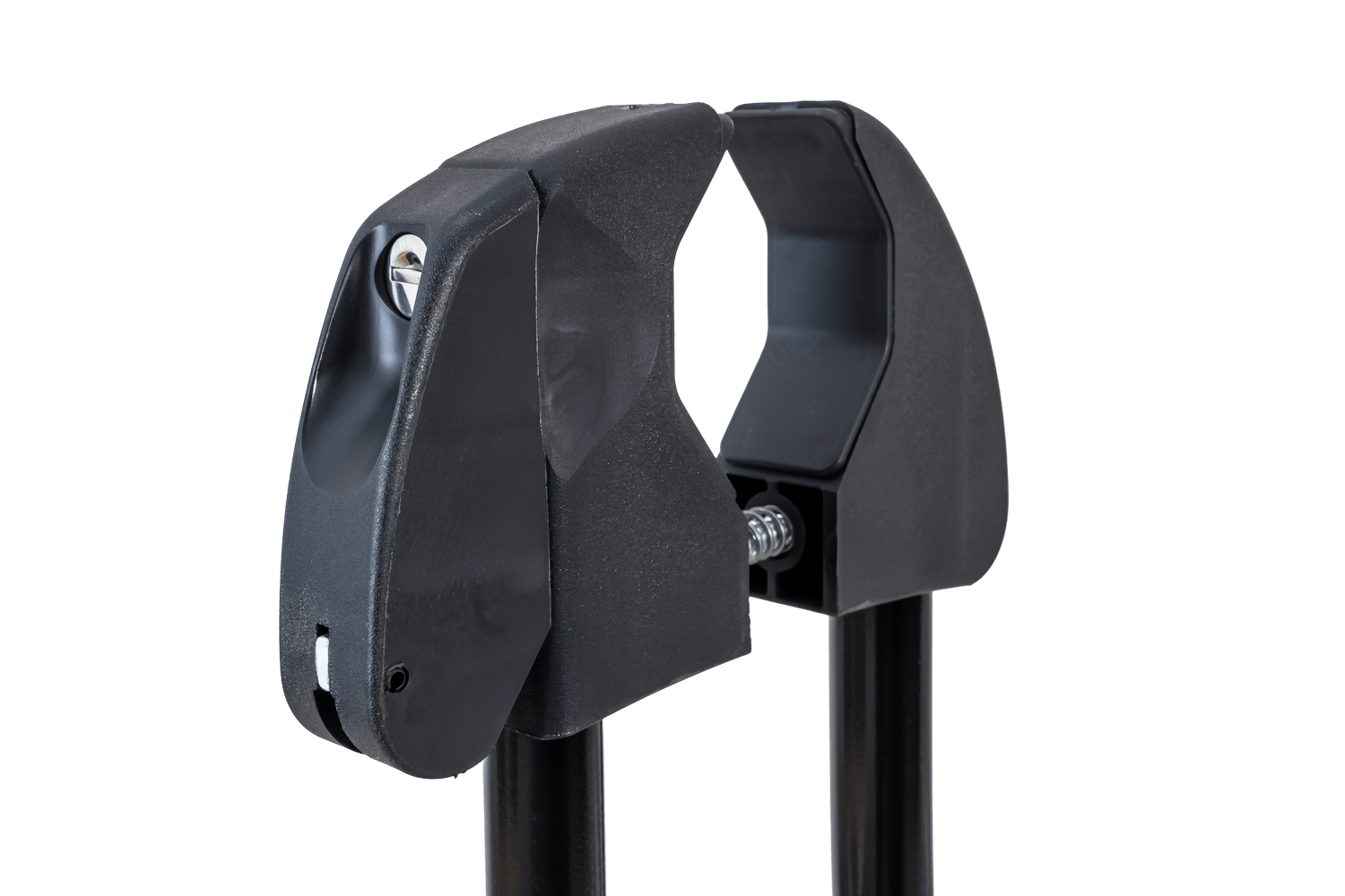 Tento nosič zajišťuje vaše kolo ve třech bodech – na rámu a na kolech. Nosič je vybaven praktickým zámkem, který umožňuje uzamknout rám kola jedním pohybem a zároveň zajišťuje kolo. Hluboká drážka usnadňující montáž také zvyšuje stabilitu kola během montáže a jízdy. Pevná ocelová konstrukce zajišťuje stabilitu a bezpečnost . Sada obsahuje dva popruhy na kola .