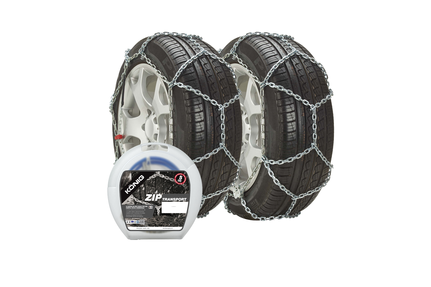 - König ZIP Transport – sněhové řetězy 16 mm s vnitřním lankem a vnějším nastavením. Intuitivní instalace i v rukavicích. Ni-Mn ocel, diamantová vazba, D-články. Splňují normy ABS/ESP, certifikace TÜV/GS a ÖNORM. Pro SUV, autobusy a všechny podmínky.