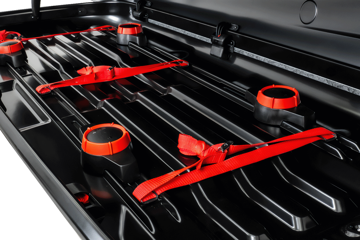 Sada obsahuje také textilní popruhy pro stabilní upevnění přepravovaných zavazadel (Zenith má vyhrazené úchyty pro popruhy).