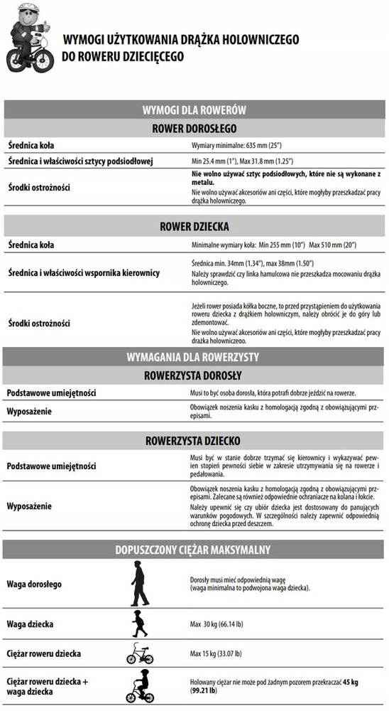 | Hmotnost dětského kola | ![]() | Max. 15 kg (33,07 lb) |