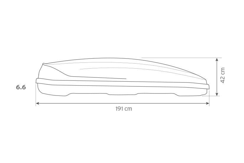Střešní box Inter Pack Traxer 6.6 v černé (metalické) barvě je funkčním a esteticky příjemným řešením pro ty, kteří potřebují na cestách více zavazadlového prostoru. S objemem 410 litrů je ideální pro dovolenou, víkendové výlety nebo rodinné pobyty. Jeho vnější délka 191 cm umožňuje přepravu lyží o délce až 185 cm , stejně jako kufrů, batohů a sportovního vybavení.