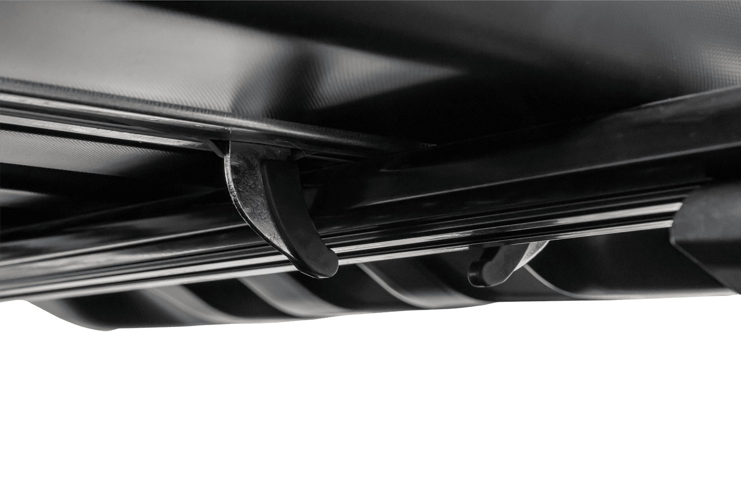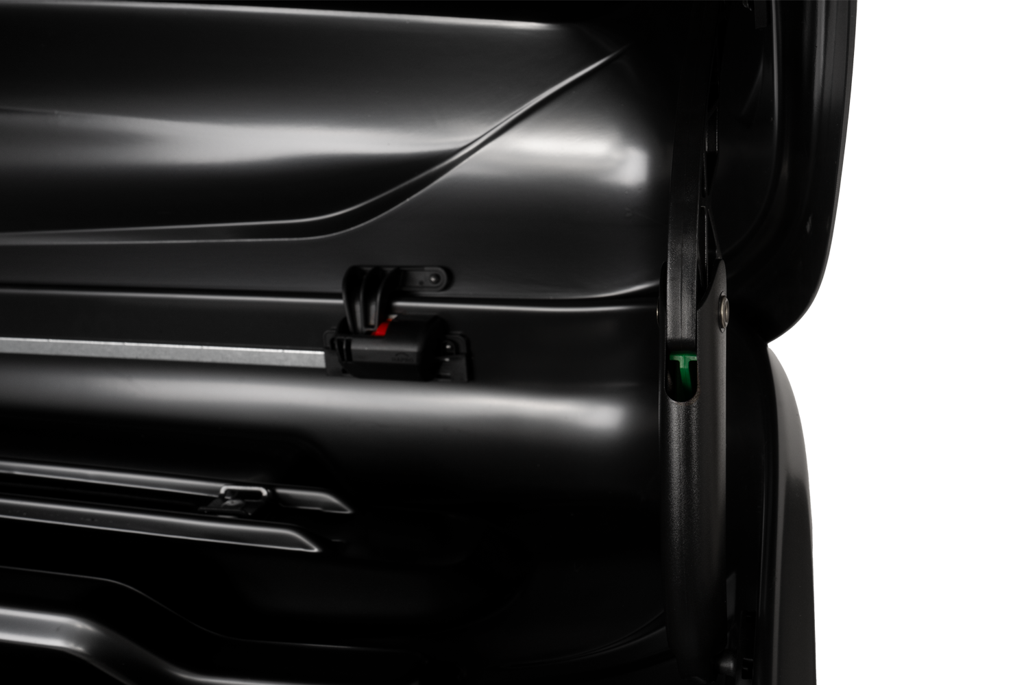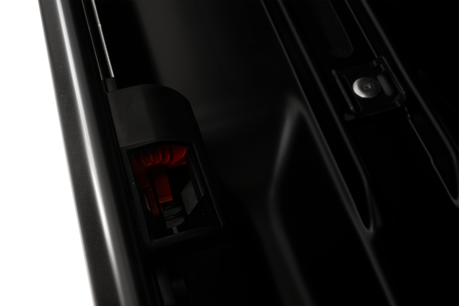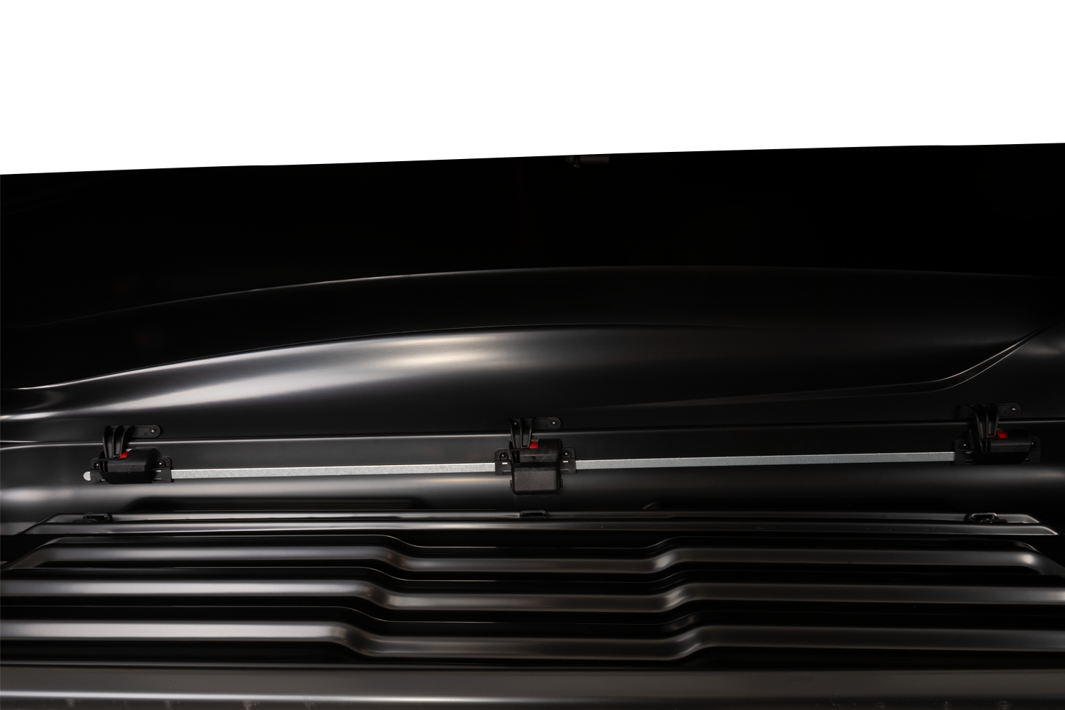 Aerodynamický design snižuje odpor vzduchu a hluk během jízdy. Obousměrné otevírání usnadňuje nakládání a přístup k zavazadel, zatímco pružinové aktuátory zajišťují pohodlné zvedání a pevné uzavření víka. Tříbodový centrální zamykání spolu s bezpečnostním systémem, který zabraňuje vytažení klíče, dokud není víko správně zavřené, zaručuje bezpečnost vašich věcí.
