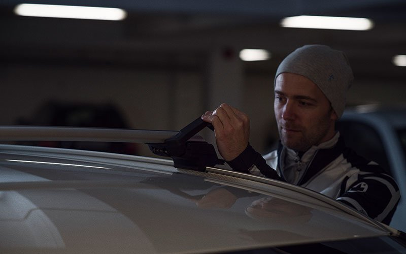 - Nainstalujte střešní nosič na střešní ližiny vašeho vozu