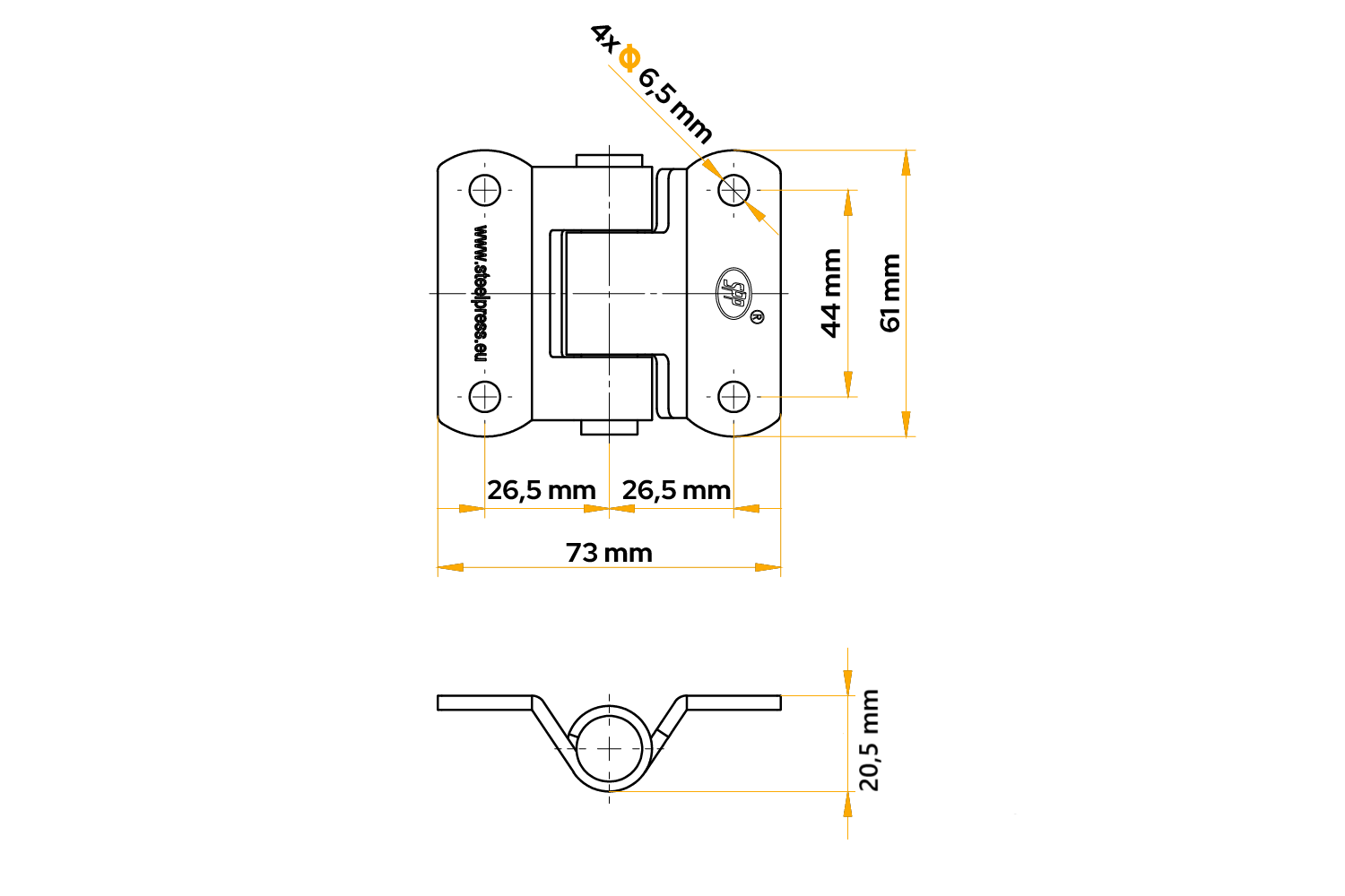 Boční pant ZW-02.40 od společnosti STEELPRESS je robustní a odolný hardwarový prvek určený pro montáž bočních panelů na nákladní, zemědělské a užitkové přívěsy. Pant je dlouhý 73 mm a široký 61 mm , takže je všestranný a snadno se montuje na různé typy přívěsů. Precizní zpracování zajišťuje stabilní chod pantu a zjednodušuje otevírání a zavírání bočních panelů, čímž zvyšuje funkčnost celé konstrukce přívěsu.