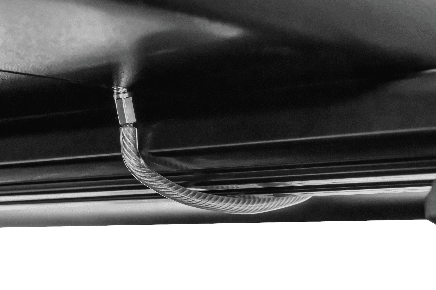 Montážní systém se přizpůsobí rozteči nosníků v rozsahu 57–84 cm a ocelové lanko v krytu chrání základní stojan před poškozením a poškrábáním.