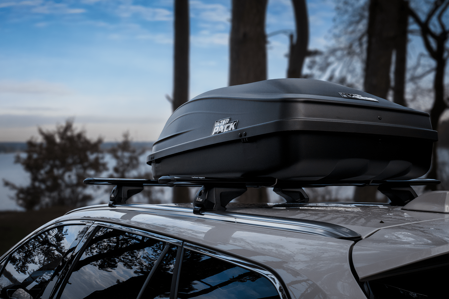 - Střešní box Inter Pack Stella 370 (matně černý) – objem 240 l, délka 134 cm, nosnost 50 kg, hmotnost 7 kg. Kompaktní a lehký, vhodný pro hatchbacky a sedany. Flexi Fit, centrální zamykání a pružinové aktuátory zajišťují pohodlí a bezpečnost.