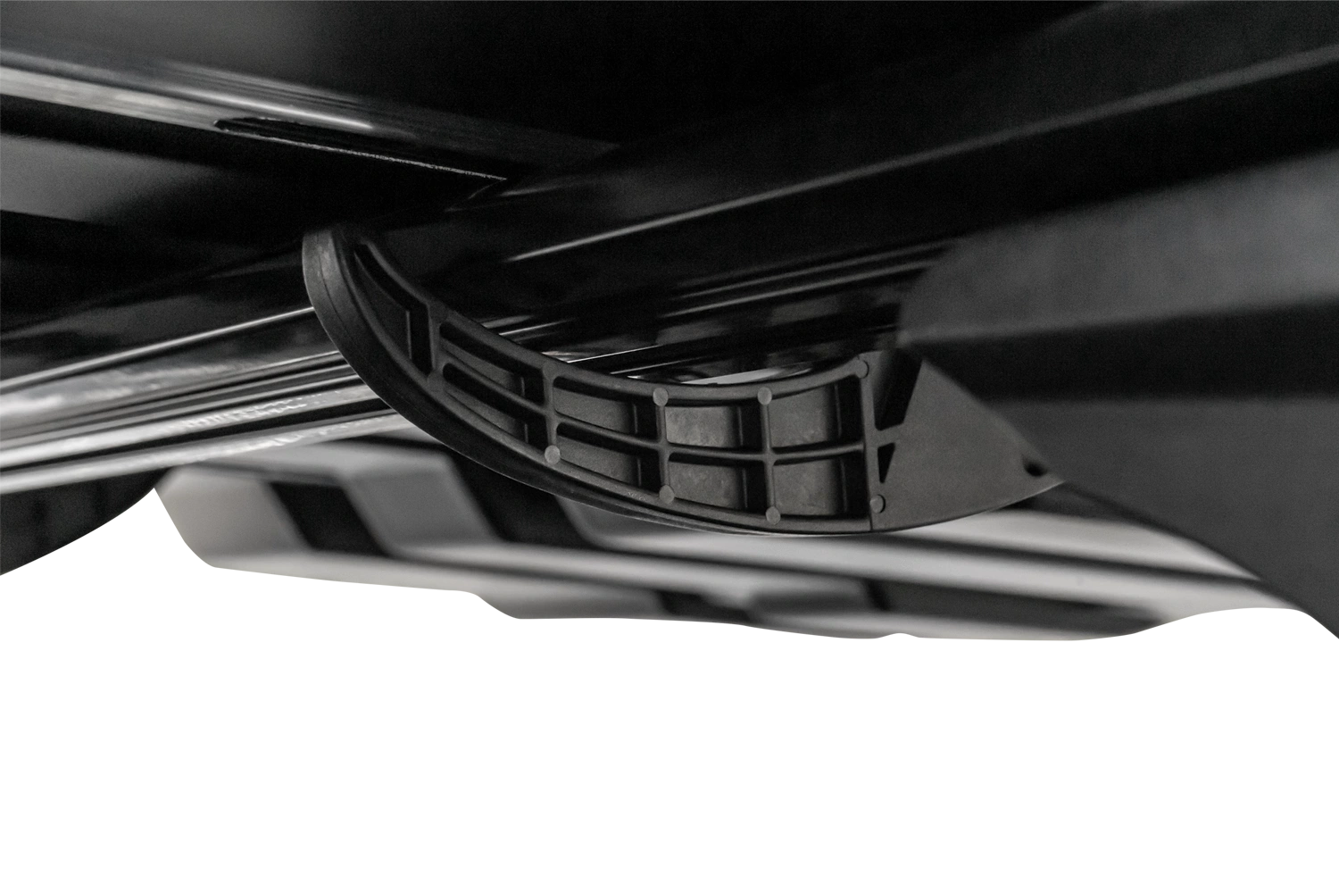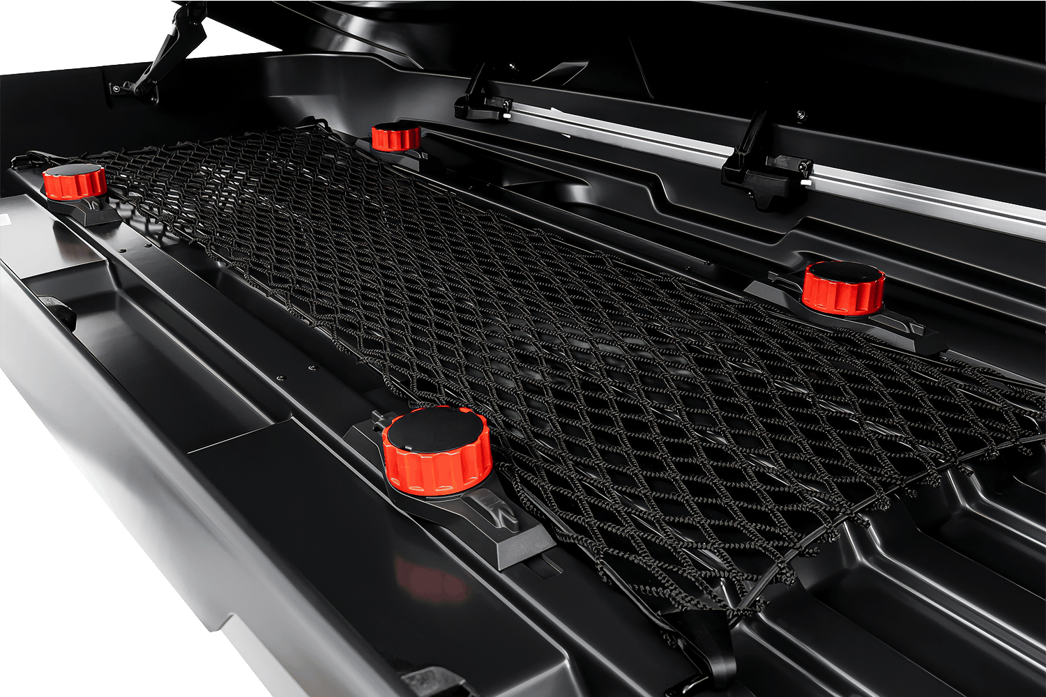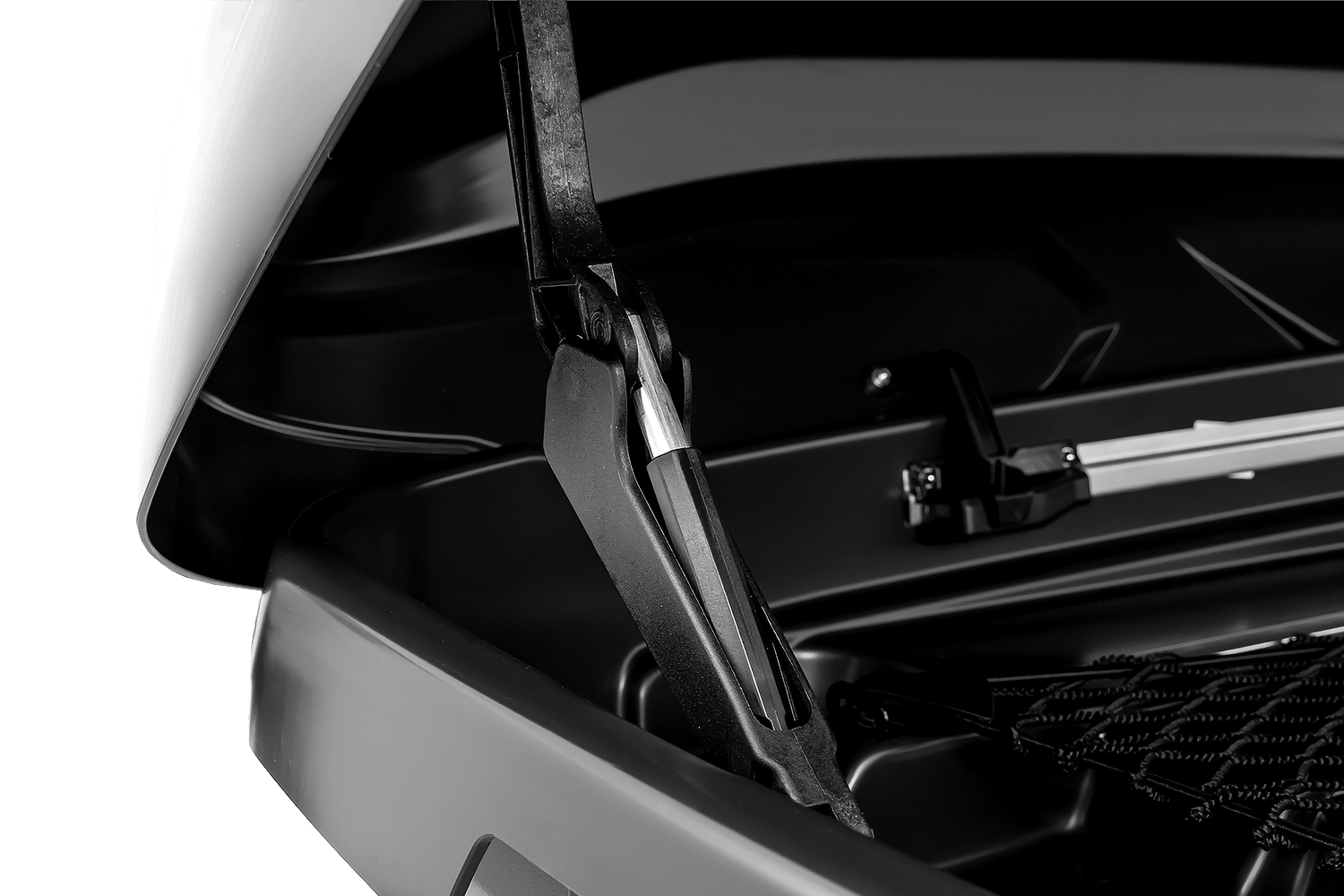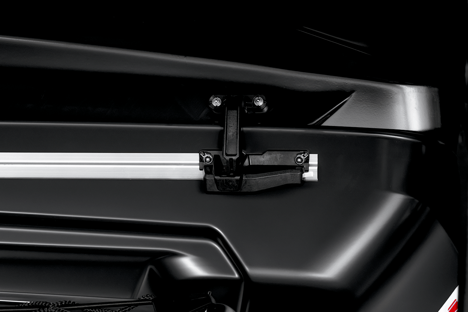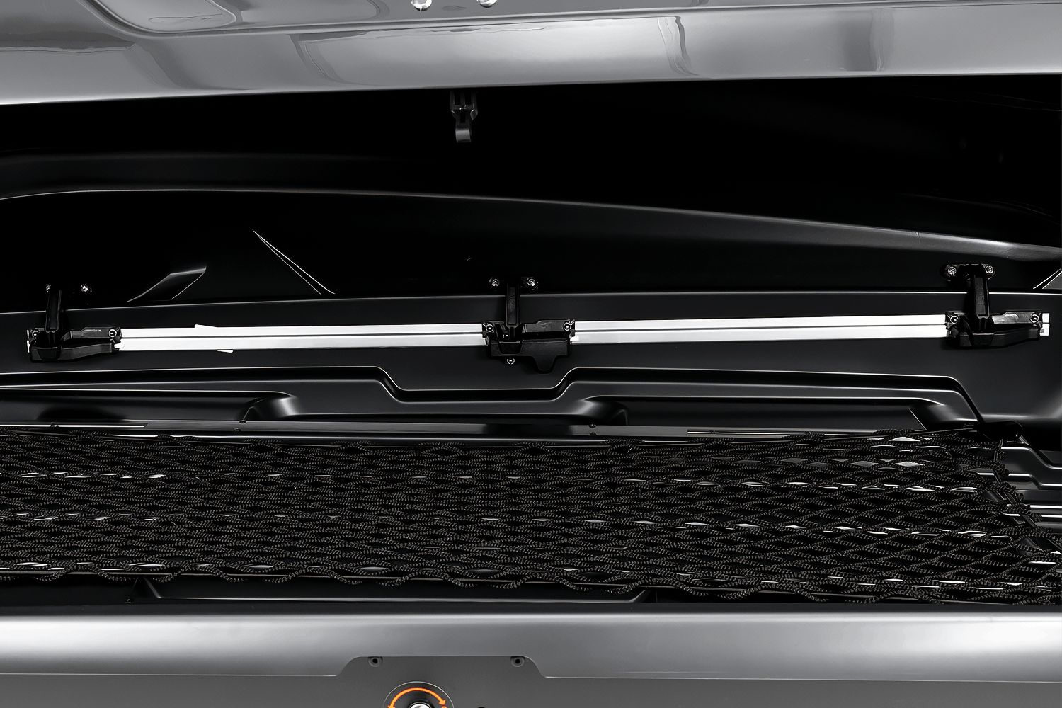 Díky pohyblivým lištám lze box nastavit tak, aby odpovídal rozteči tyčí od 46 do 115 cm . Vestavěný dynamometr signalizuje správnou instalaci, zabraňuje nadměrnému utažení a chrání jak box, tak střešní nosič.