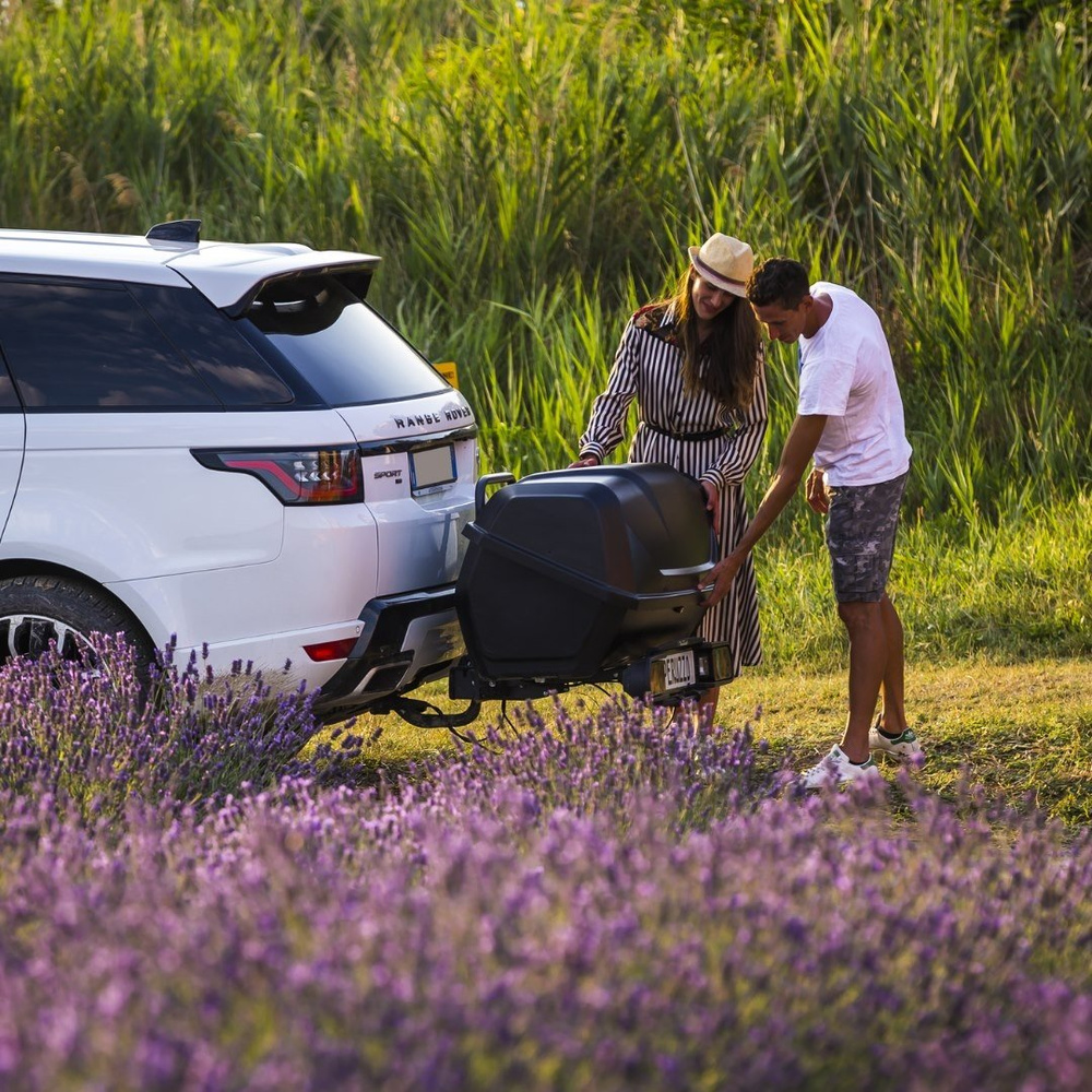 Box GP s moderním designem a velkou kapacitou vám umožní proměnit váš nosič kol v praktický nosič na tažné zařízení pro váš vůz.