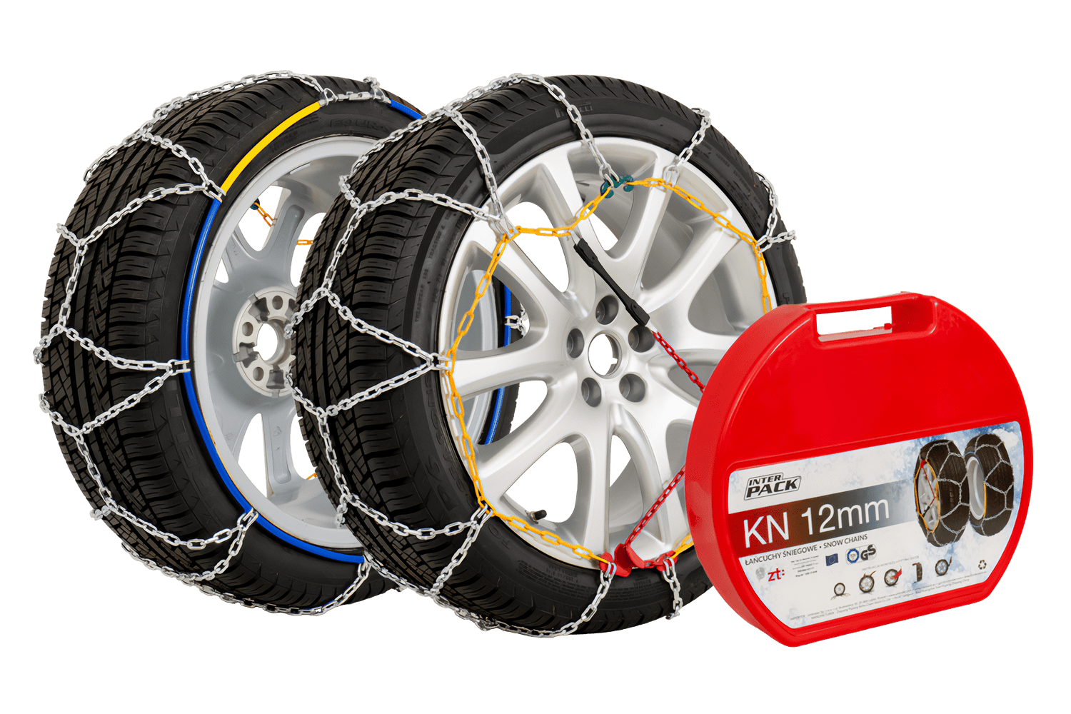 - Sněhové řetězy Inter Pack KN jsou určeny pro osobní automobily. Články o tloušťce 12 mm zaručují odolnost a snadná instalace nevyžaduje přejíždění. Diamantový vzor zlepšuje trakci. Jsou certifikovány dle norem TÜV, GS a Ö-Norm a jsou kompatibilní s ABS a