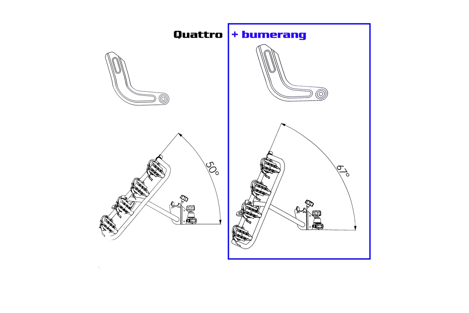 - Omezovač „Boomerang“ zvětšuje úhel náklonu plošiny na 67 stupňů. Pasuje na plošiny Inter Pack Quattro a Trio.
