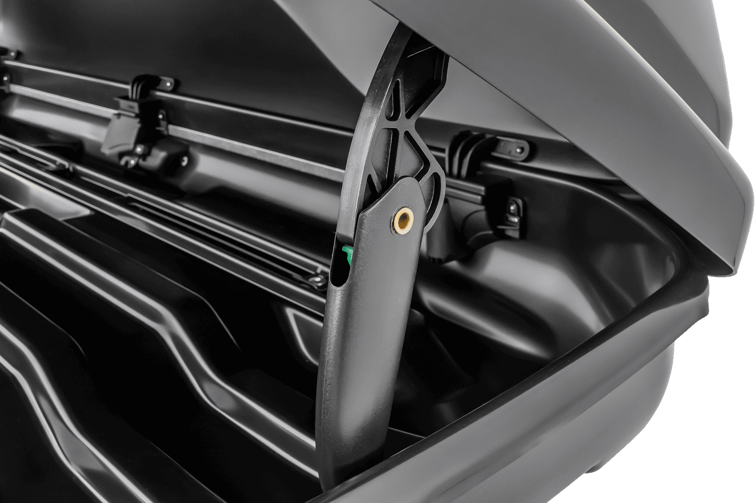 Box byl navržen tak, aby kombinoval funkčnost s elegantním designem . Jeho aerodynamický kryt snižuje odpor vzduchu a hluk během jízdy, čímž zvyšuje cestovní komfort. Nosnost 75 kg s hmotností 17,5 kg zaručuje optimální rovnováhu mezi odolností a snadným použitím. Oboustranný otevírací systém umožňuje rychlý přístup do interiéru z obou stran vozidla, což se ukazuje jako mimořádně praktické například na přeplněných parkovištích.