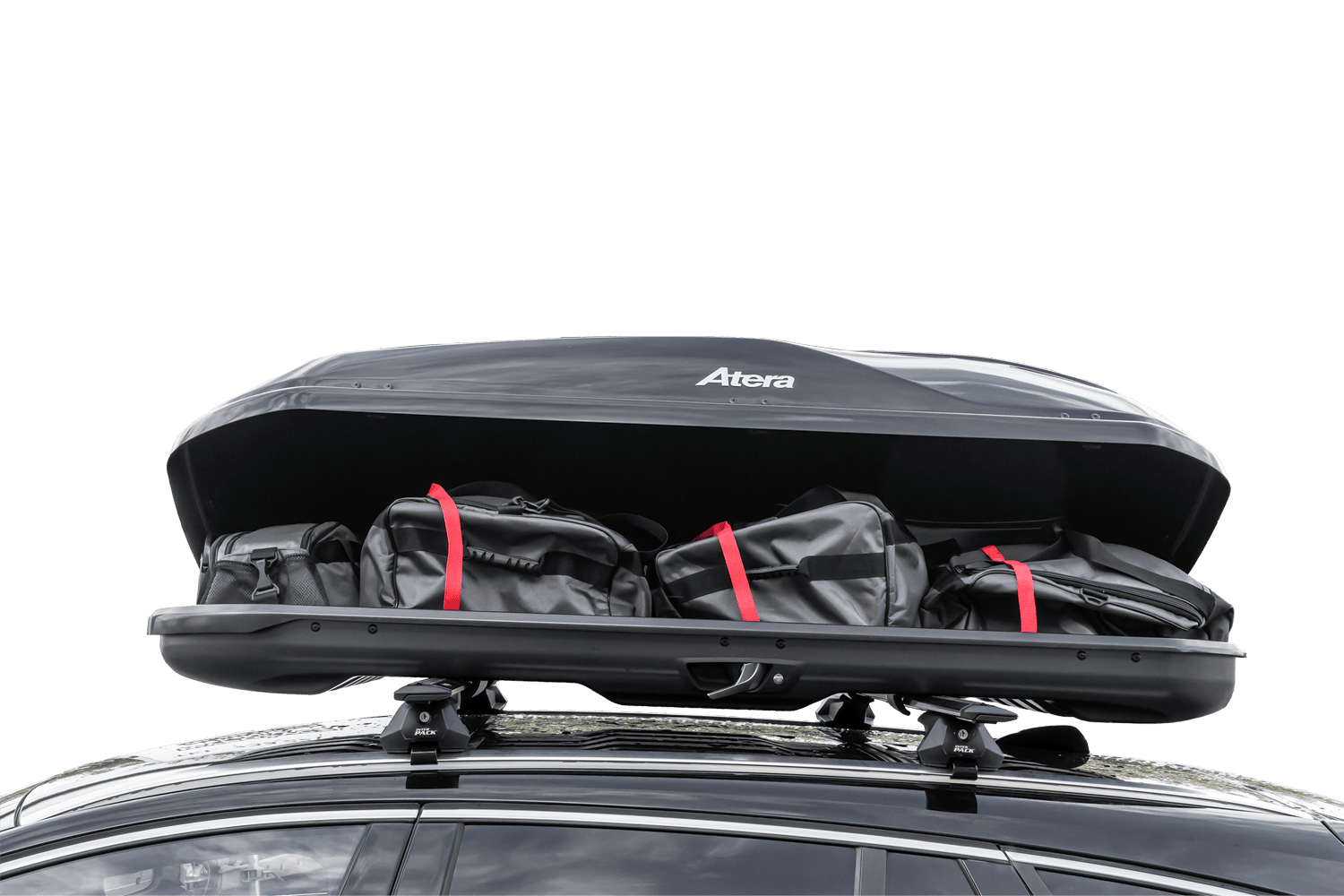 - Střešní box Atera Casar L – objem 420 l, délka 191 cm, nosnost 75 kg, hmotnost 17,5 kg. Vejde se do něj kufry, tašky, lyže a snowboardy do délky 185 cm. Oboustranné otevírání, systém Premium Fit s dynamometrem a centrální zamykání Safe Guard zajišťují bez