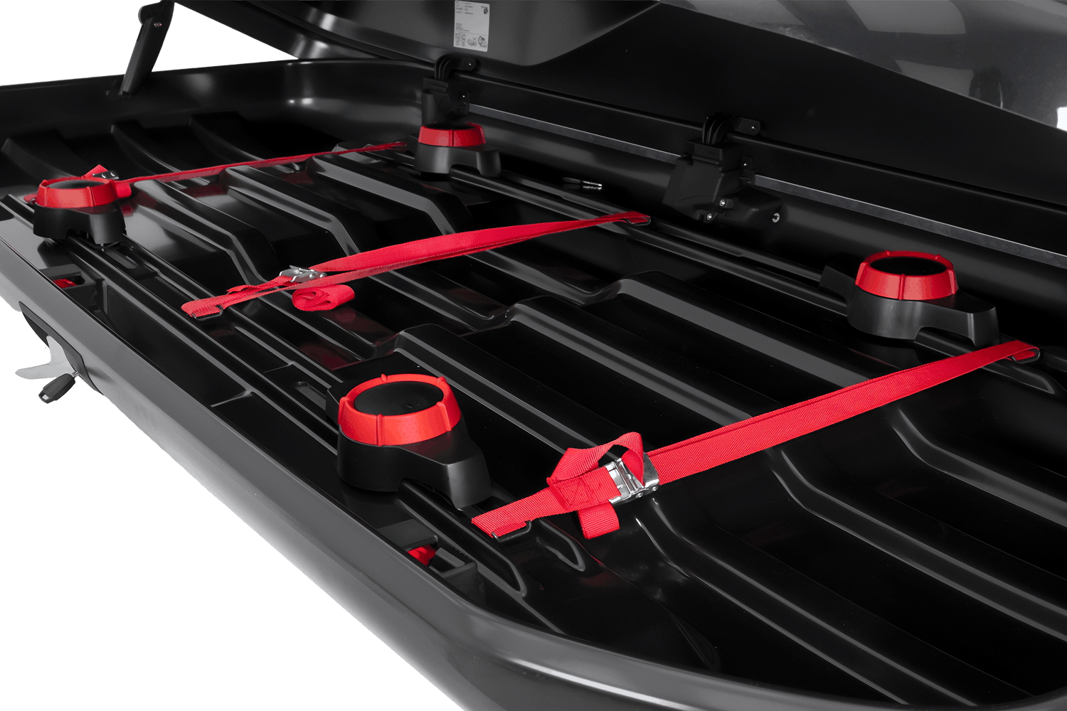 Sada obsahuje také textilní popruhy pro stabilní upevnění zavazadel, které lze připevnit k určeným držákům uvnitř boxu.