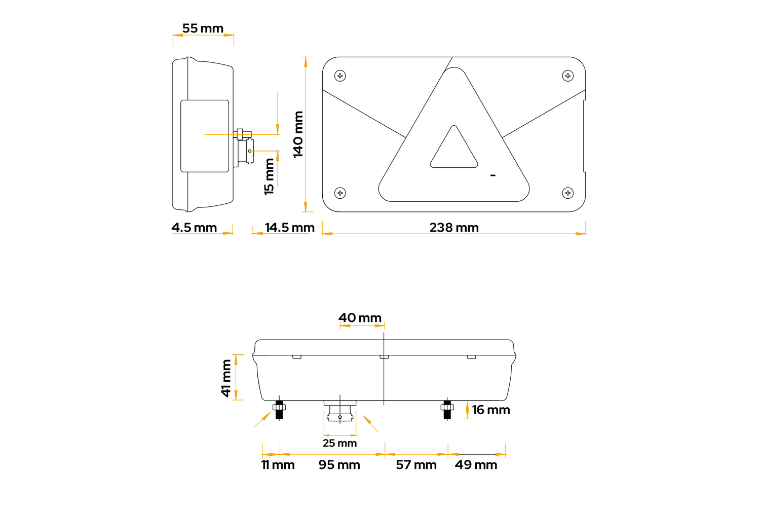 Zadní svítilna Multipoint V LED od ASPÖCK je určena pro montáž na pravou stranu vozidla a má tyto rozměry: šířka 238 mm, výška 140 mm, hloubka 55 mm . Je vybaven 5pinovým bajonetovým konektorem a umožňuje snadnou a rychlou instalaci v přívěsech, autobusech a odtahových vozech .