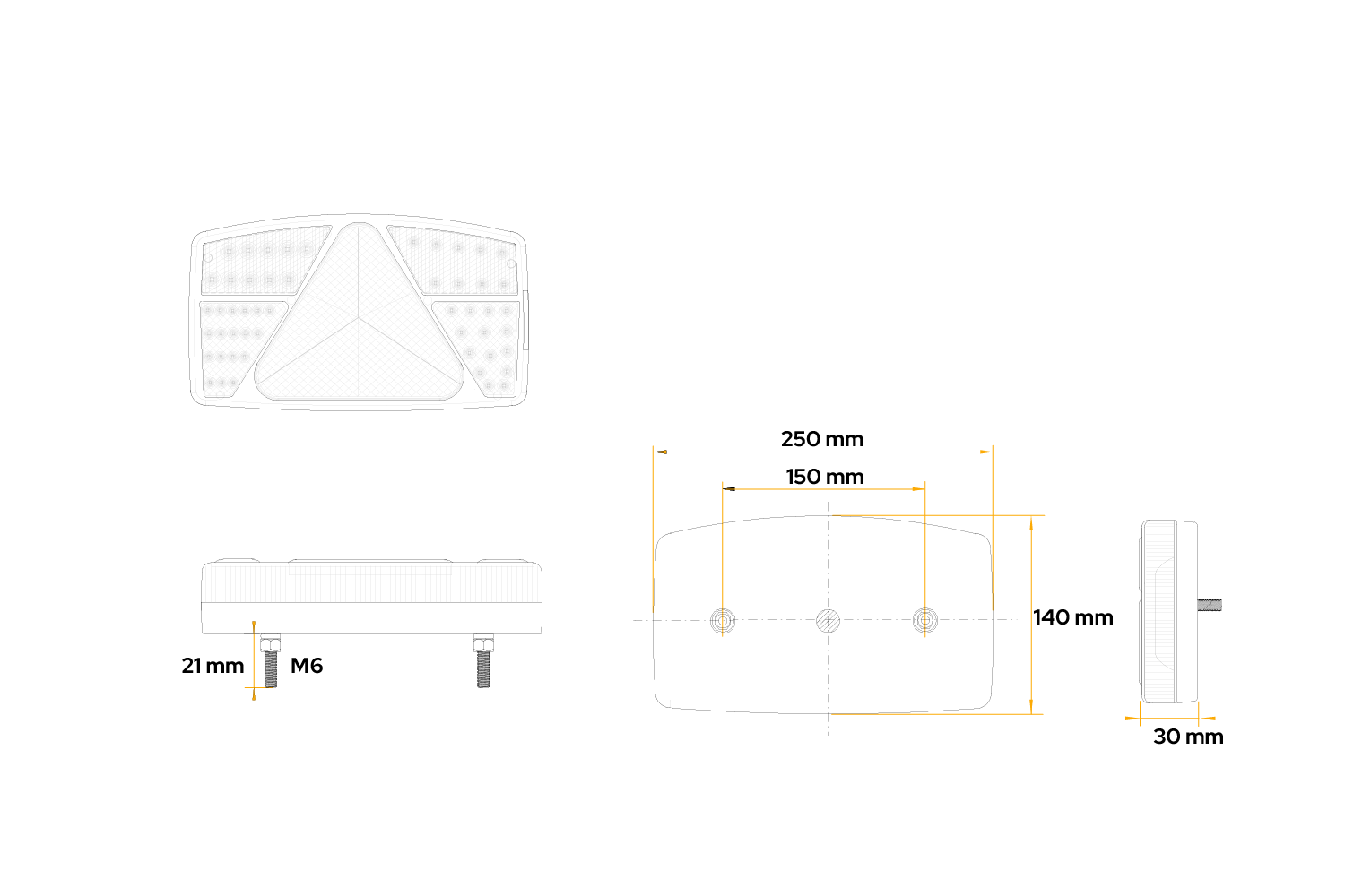 Zadní svítilna schválená E-Approval splňuje evropské normy pro bezpečnost a kvalitu osvětlení vozidla. Tento typ certifikace zaručuje, že výrobek prošel přísnými technickými testy, včetně splnění zákonných požadavků a světelné účinnosti, díky čemuž je svítilna vhodná pro použití na veřejných komunikacích v evropských zemích. Ideální pro použití v přívěsech, nákladních a užitkových strojích.
