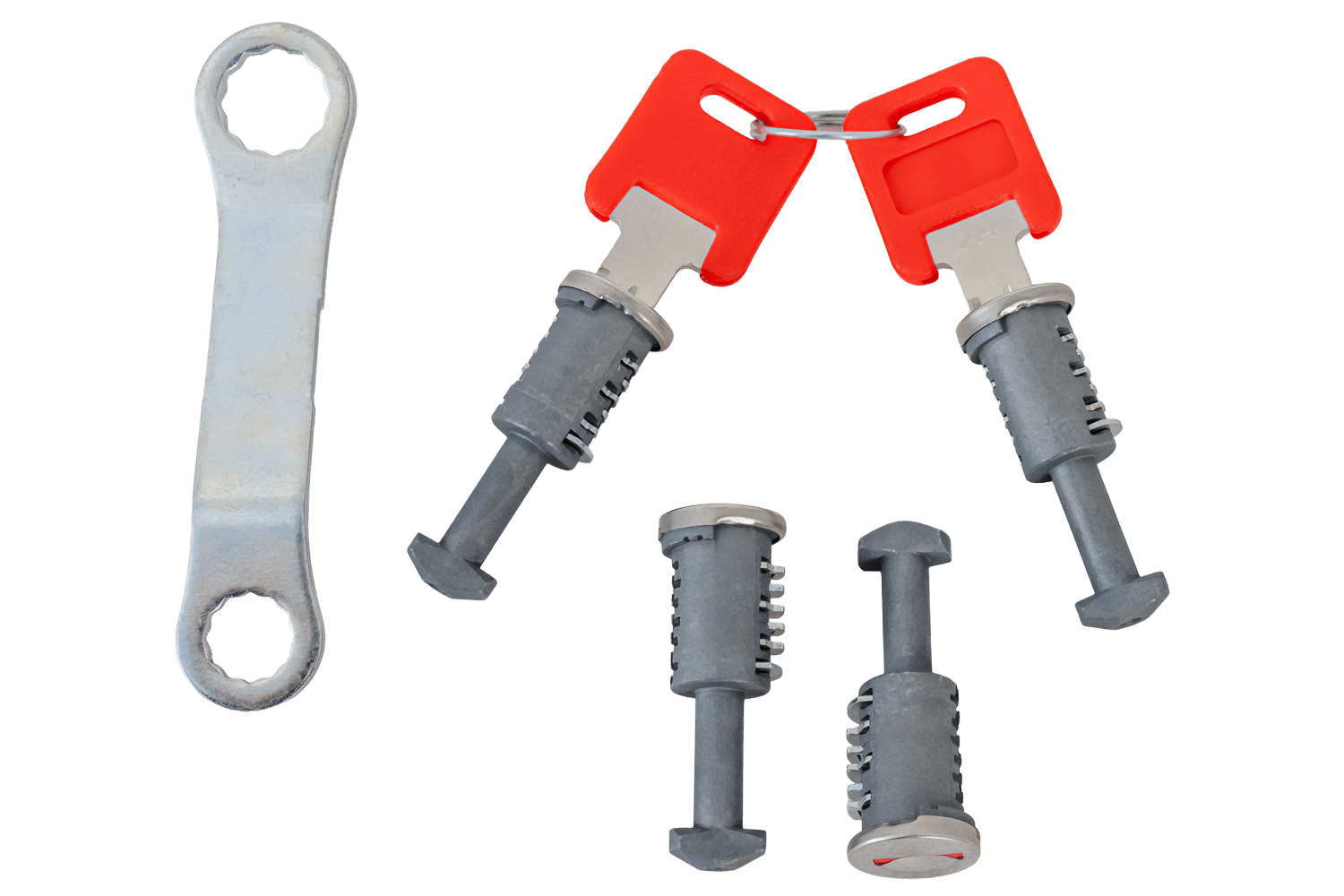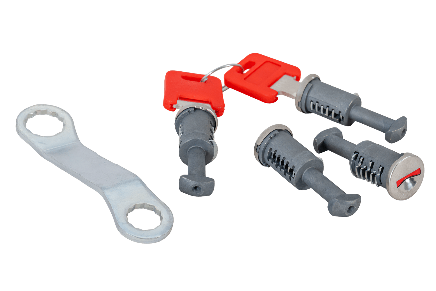 - Tato sada obsahuje čtyři zámky a dva odpovídající klíče. Pasuje pouze na nosiče Pacific G3. Kód sady: 69.015