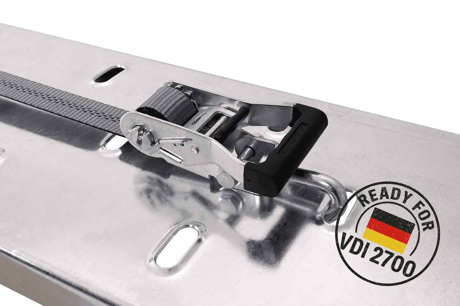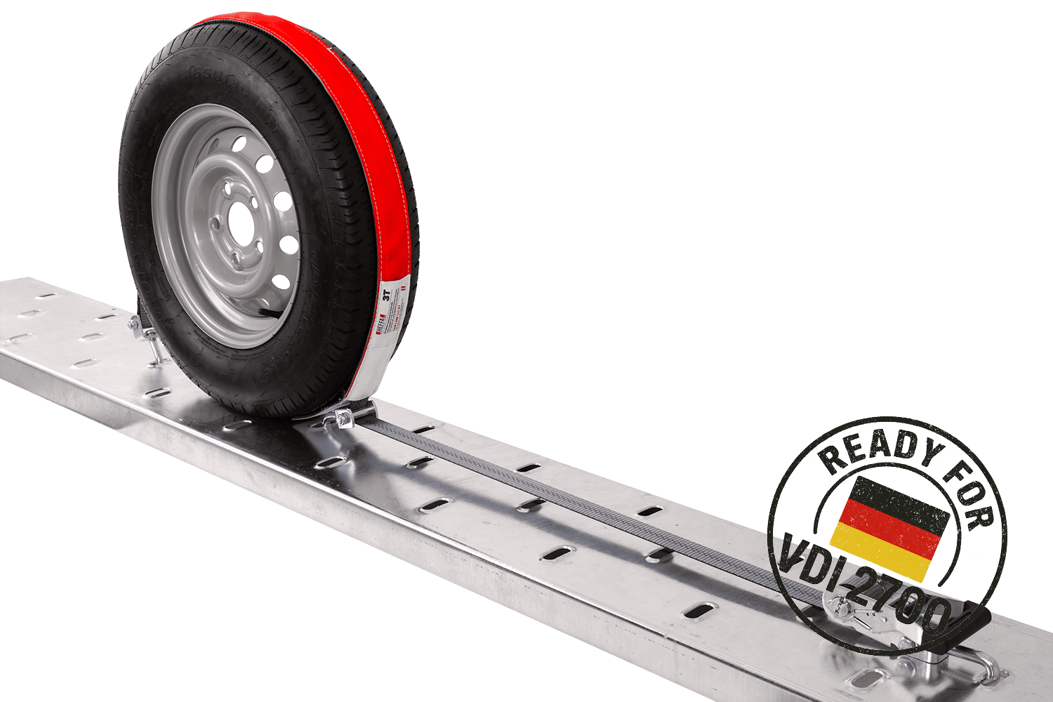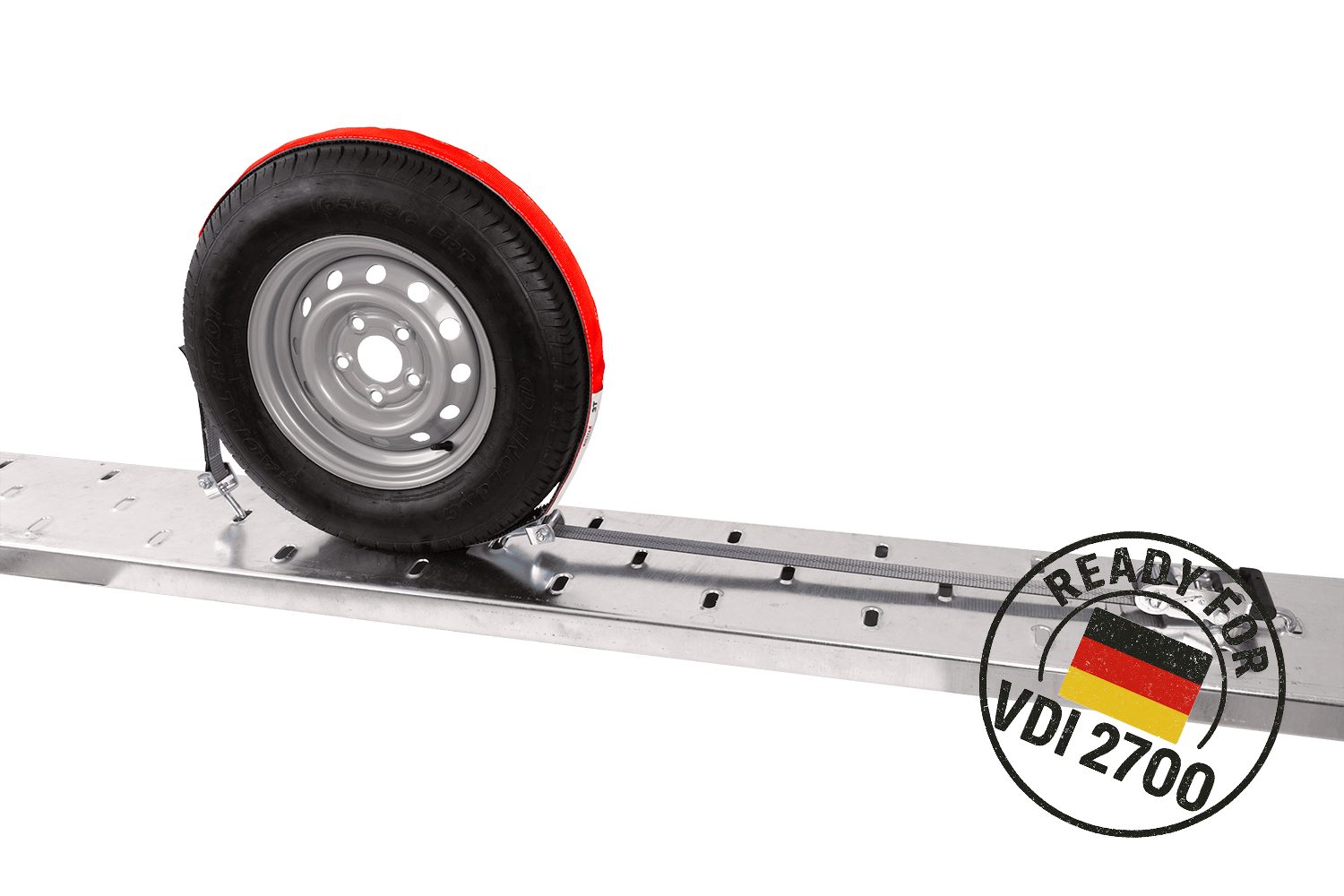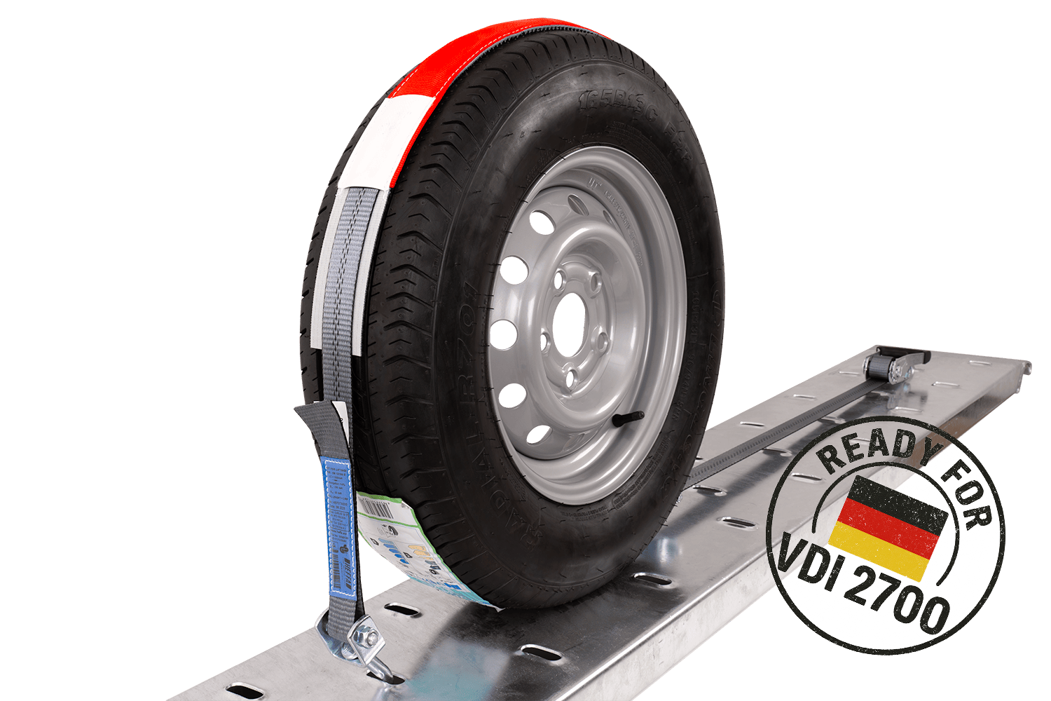 Směrnice VDI 2700 část 8.1 je německá technická norma, která specifikuje podrobné požadavky na zajištění vozidel přepravovaných na plošinových přívěsech a návěsech . V souvislosti s upevňovacími popruhy s upevněním kol tato směrnice mimo jiné specifikuje způsob uspořádání pásů, požadovaný počet upevňovacích bodů (např. 3bodový systém), parametry minimální napínací síly a zásady jejich označování a technického schválení. Soulad s normou VDI 2700 8.1 znamená, že popruhy splňují přísné požadavky na bezpečnost, spolehlivost a účinnost znehybnění přepravovaného vozidla , což je klíčové pro profesionální přepravu osobních automobilů a dodávek. Díky tomu si uživatel může být jistý, že použitý upevňovací systém splňuje současné evropské a německé normy v oblasti bezpečnosti silničního provozu.