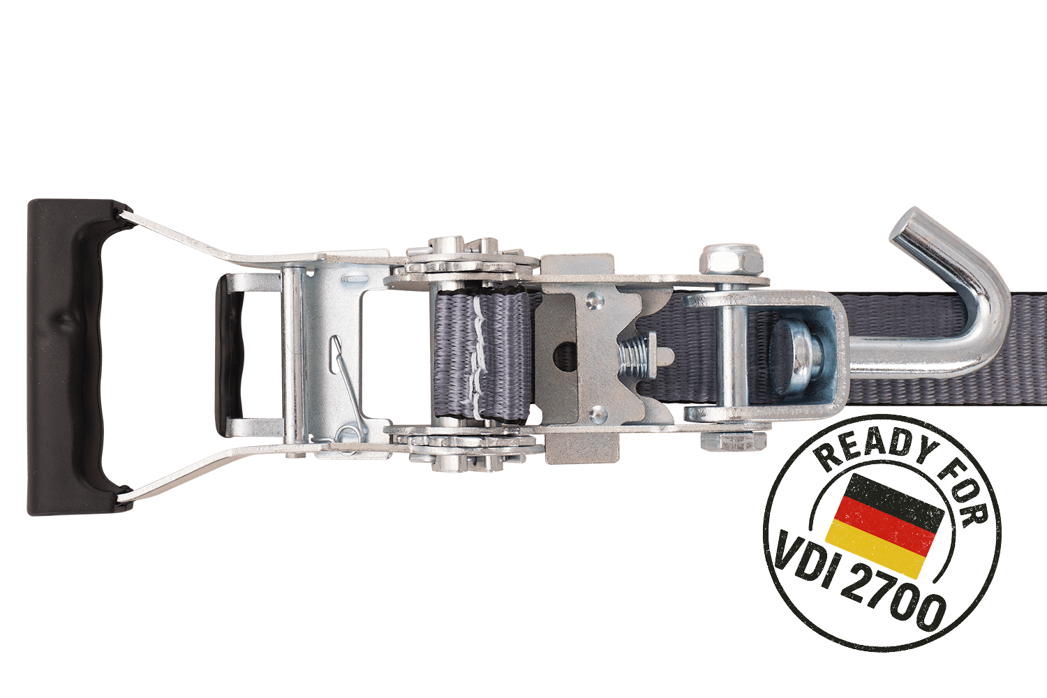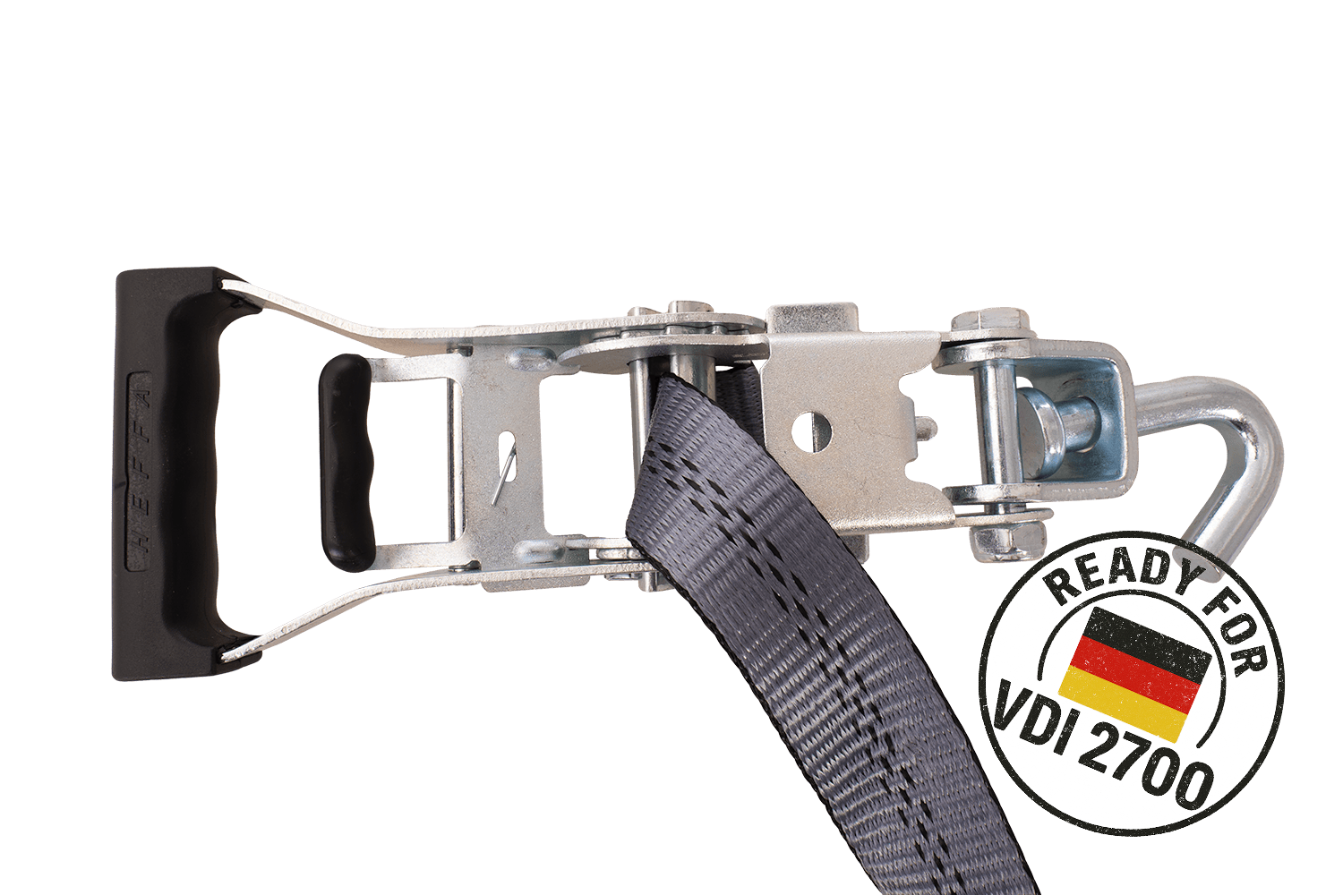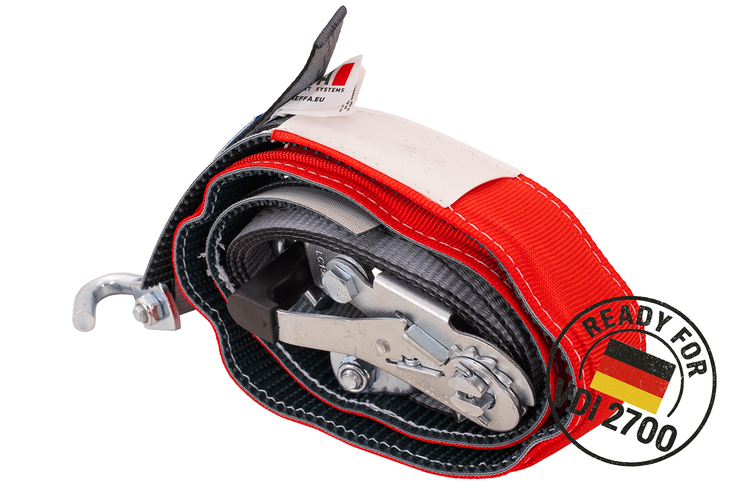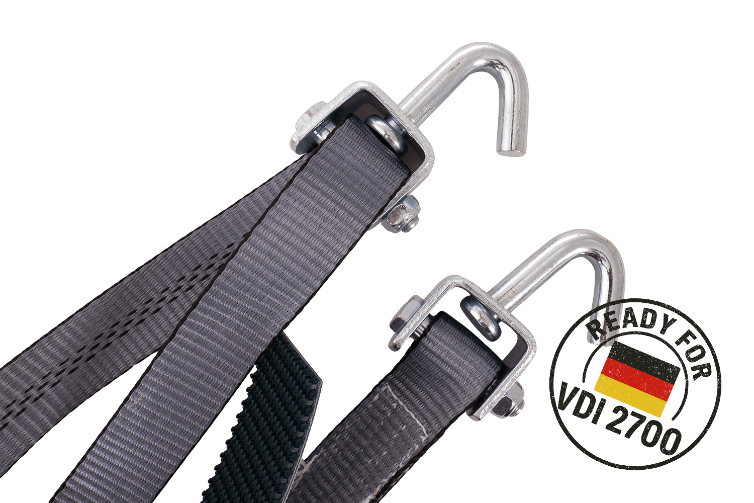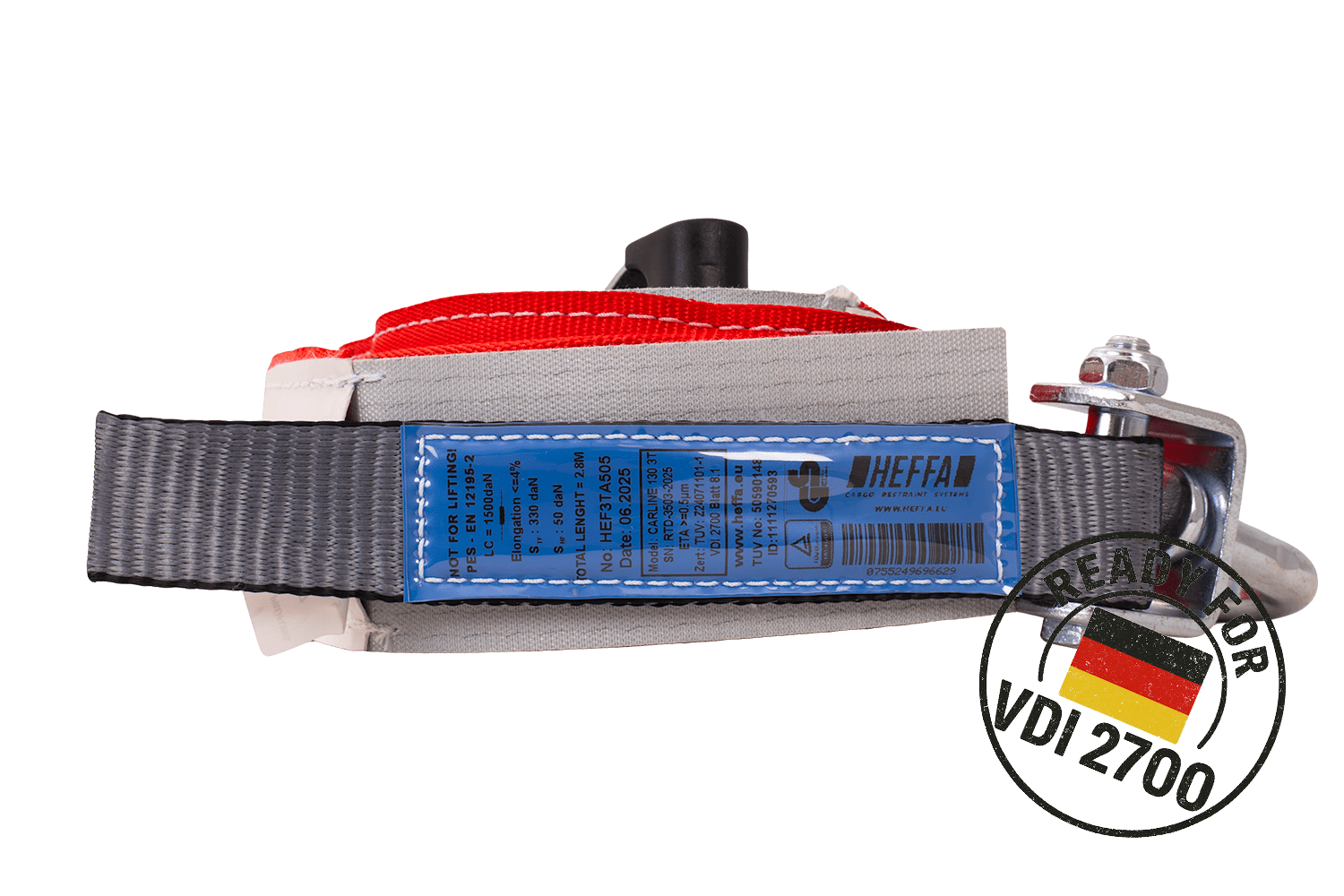 Směrnice VDI 2700 část 8.1 je německá technická norma, která specifikuje podrobné požadavky na zajištění vozidel přepravovaných na plošinových přívěsech a návěsech . V souvislosti s upevňovacími popruhy s upevněním kol tato směrnice mimo jiné specifikuje způsob uspořádání pásů, požadovaný počet upevňovacích bodů (např. 3bodový systém), parametry minimální napínací síly a zásady jejich označování a technického schválení. Soulad s normou VDI 2700 8.1 znamená, že popruhy splňují přísné požadavky na bezpečnost, spolehlivost a účinnost znehybnění přepravovaného vozidla , což je klíčové pro profesionální přepravu osobních automobilů a dodávek. Díky tomu si uživatel může být jistý, že použitý upevňovací systém splňuje současné evropské a německé normy v oblasti bezpečnosti silničního provozu.