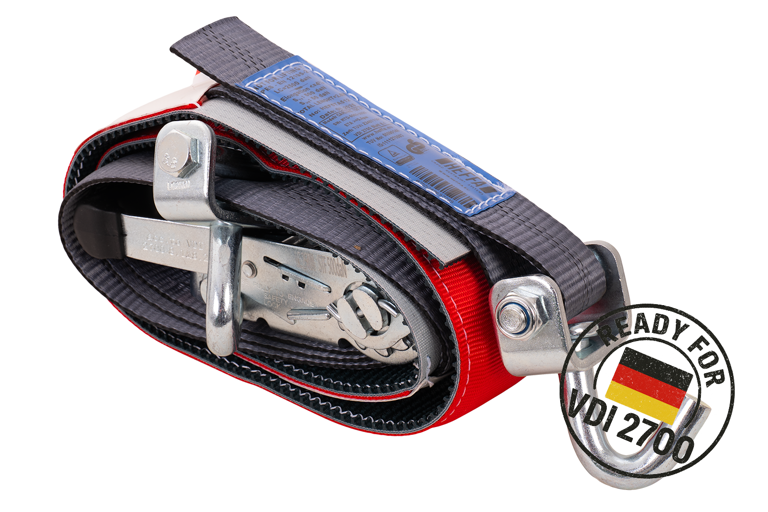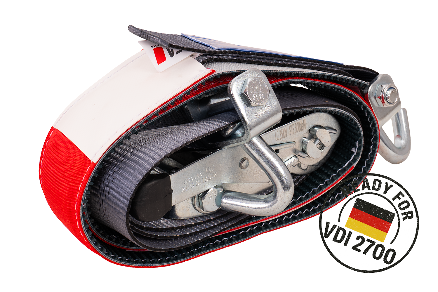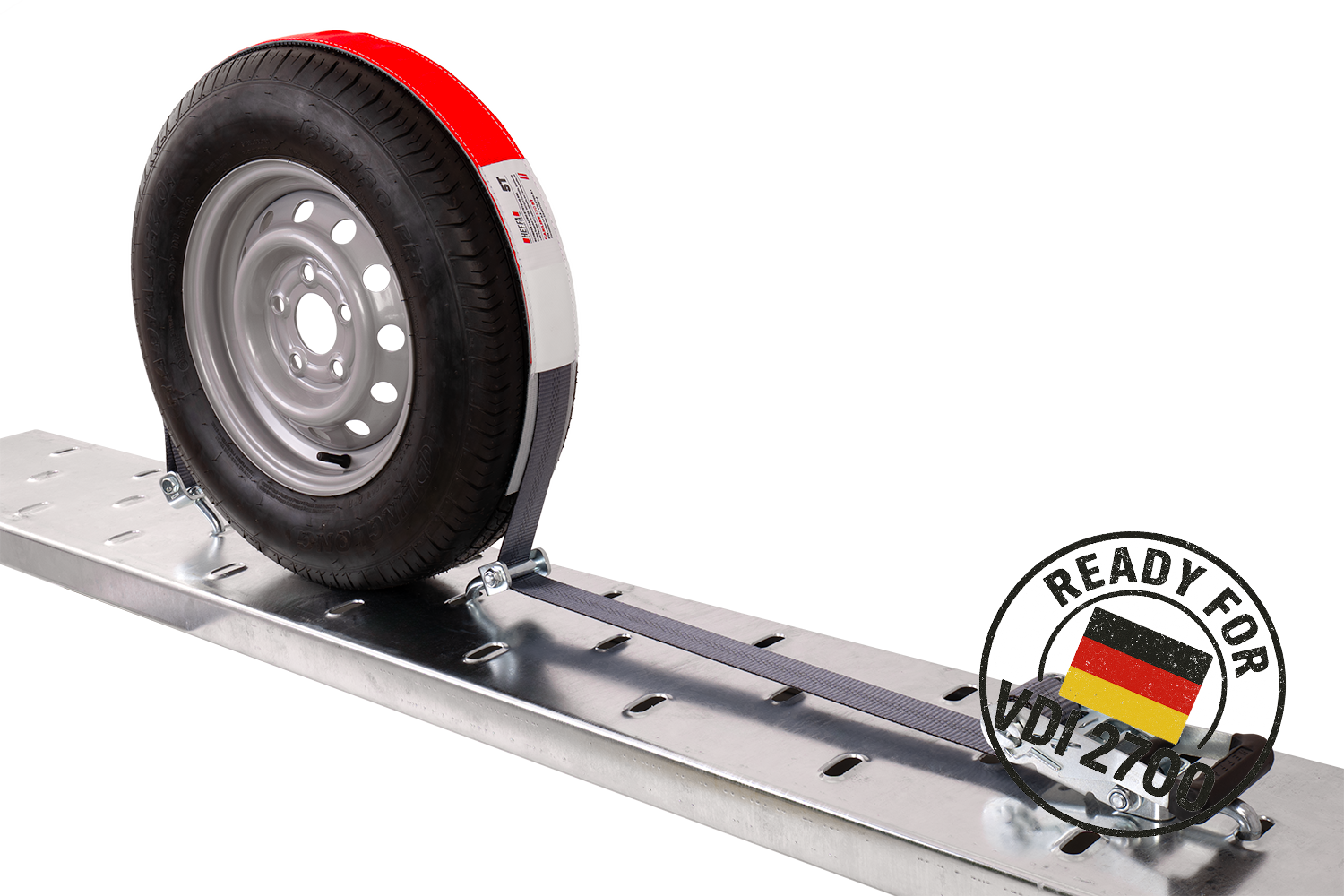 Směrnice VDI 2700 část 8.1 je německá technická norma, která specifikuje podrobné požadavky na zajištění vozidel přepravovaných na plošinových přívěsech a návěsech . V souvislosti s upevňovacími popruhy s upevněním kol tato směrnice mimo jiné specifikuje způsob uspořádání pásů, požadovaný počet upevňovacích bodů (např. 3bodový systém), parametry minimální napínací síly a zásady jejich označování a technického schválení. Soulad s normou VDI 2700 8.1 znamená, že popruhy splňují přísné požadavky na bezpečnost, spolehlivost a účinnost znehybnění přepravovaného vozidla , což je klíčové pro profesionální přepravu osobních automobilů a dodávek. Díky tomu si uživatel může být jistý, že použitý upevňovací systém splňuje současné evropské a německé normy v oblasti bezpečnosti silničního provozu.