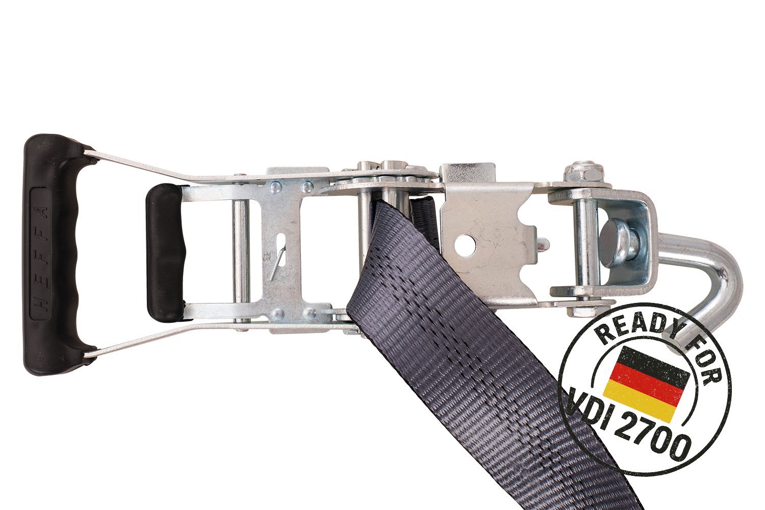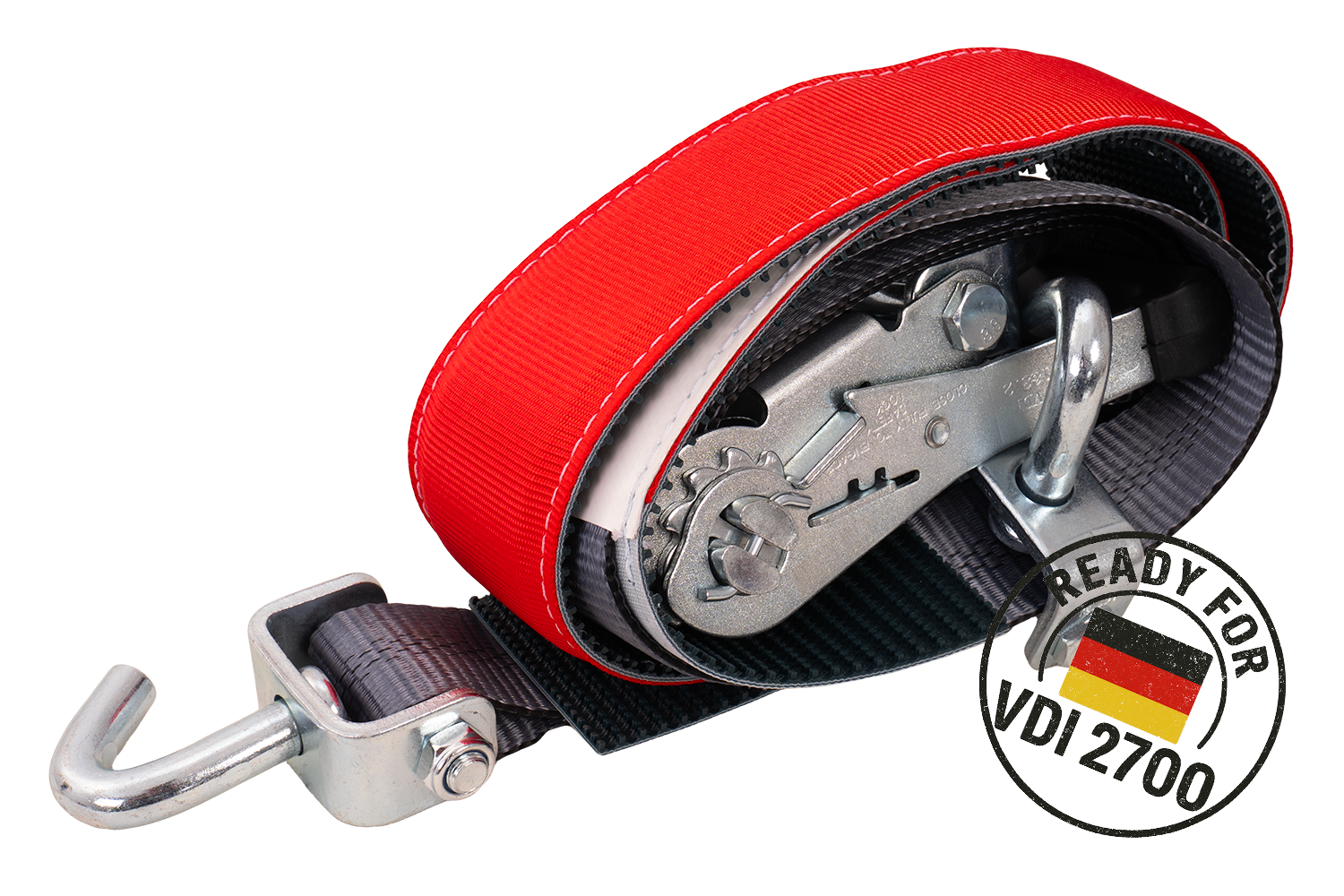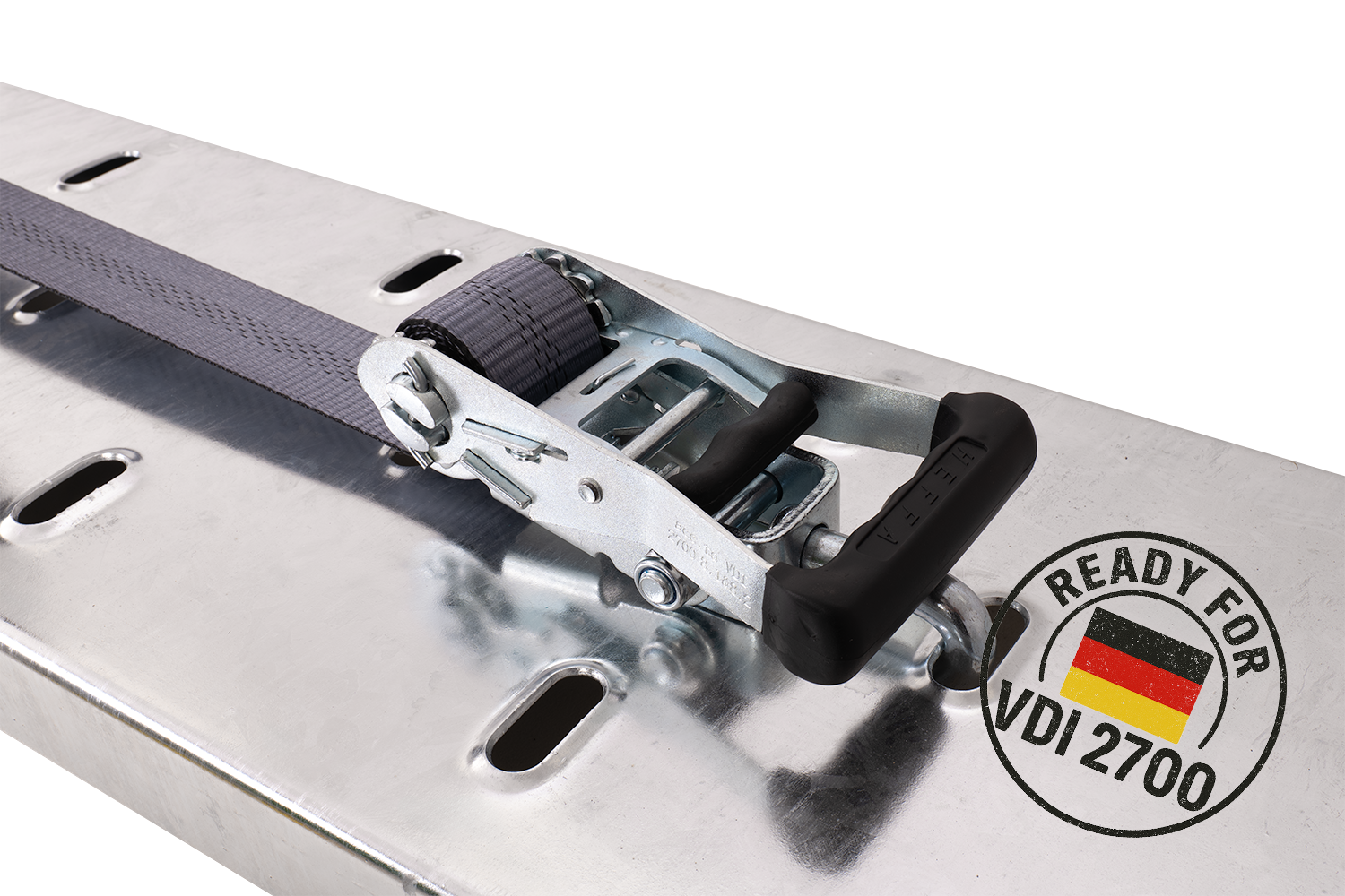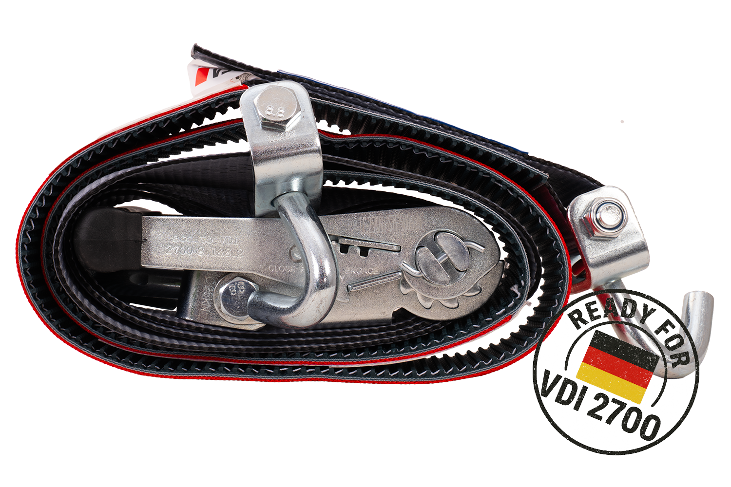 Směrnice VDI 2700 část 8.1 je německá technická norma, která specifikuje podrobné požadavky na zajištění vozidel přepravovaných na plošinových přívěsech a návěsech . V souvislosti s upevňovacími popruhy s upevněním kol tato směrnice mimo jiné specifikuje způsob uspořádání pásů, požadovaný počet upevňovacích bodů (např. 3bodový systém), parametry minimální napínací síly a zásady jejich označování a technického schválení. Soulad s normou VDI 2700 8.1 znamená, že popruhy splňují přísné požadavky na bezpečnost, spolehlivost a účinnost znehybnění přepravovaného vozidla , což je klíčové pro profesionální přepravu osobních automobilů a dodávek. Díky tomu si uživatel může být jistý, že použitý upevňovací systém splňuje současné evropské a německé normy v oblasti bezpečnosti silničního provozu.