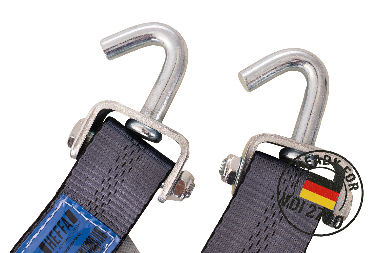Sada čtyř přepravních pásů značky HEFFA pro odtahová vozidla a přívěsy automobilů, každý o délce 2,8 m a šířce 50 mm , určených k zajištění kol vozidel pomocí pásků na pneumatiku . Vyznačují se tříbodovým upevňovacím systémem , který zajišťuje vynikající stabilizaci vozidla na odtahovém vozidle nebo plošině. Díky nosnosti 5 tun (5000 daN) jsou pásy ideální i pro přepravu těžších osobních automobilů. Toto řešení se běžně používá v přepravě vozidel – jak dopravními společnostmi, tak logistickými operátory pracujícími pro přední výrobce automobilů. Tato sada je ideální pro použití na plošinách LOHR, jedno- a víceúrovňových odtahových vozidlech a ve vícebodových upevňovacích systémech vozidel. Zaručují rychlou montáž, odolnost a bezpečnost přepravy i v obtížných silničních podmínkách.