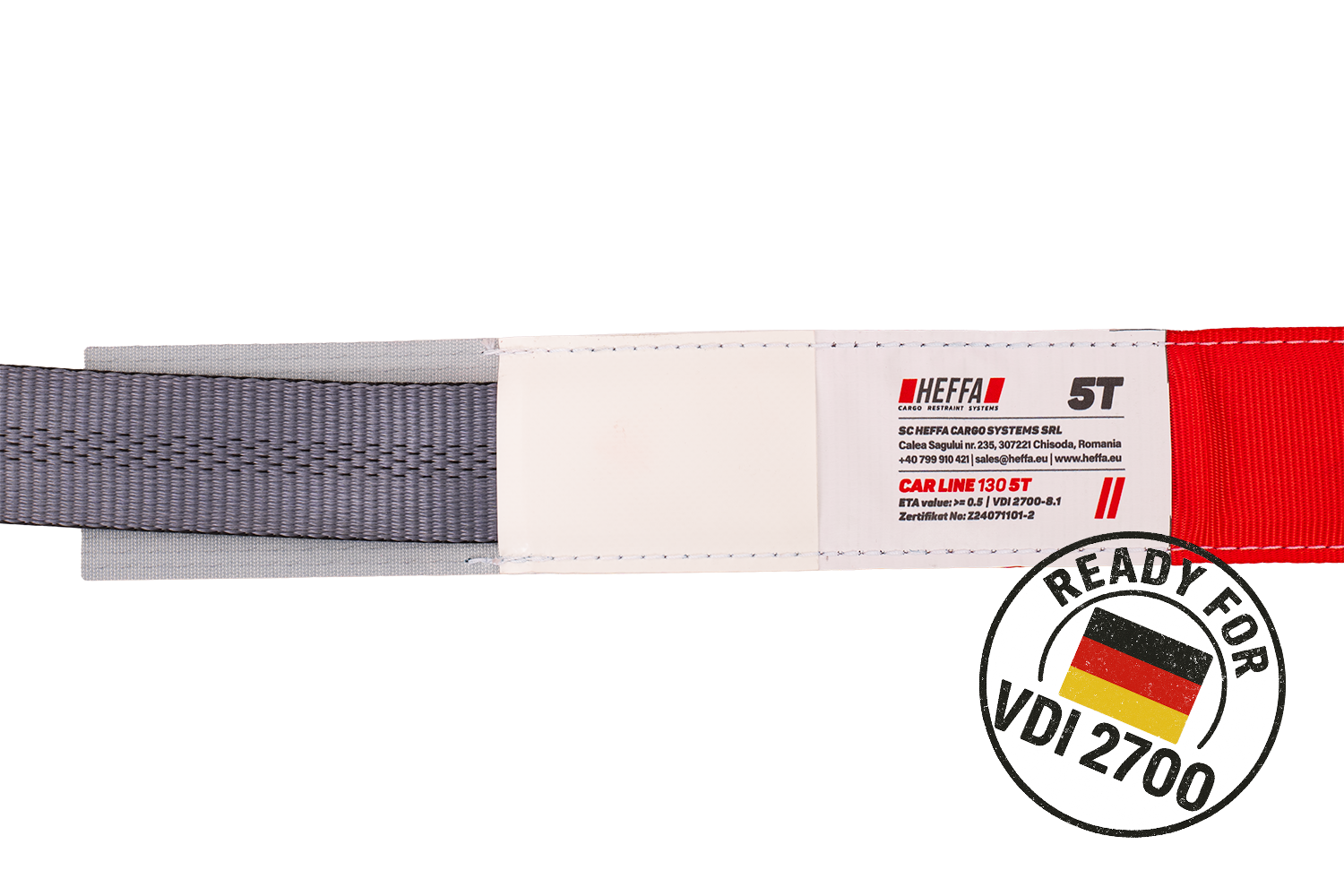 HEFFA CARLINE 130 přepravní pás pro odtahovku, zajišťovací pás pro kola 2,8 m/50 mm/5 t VDI 2700