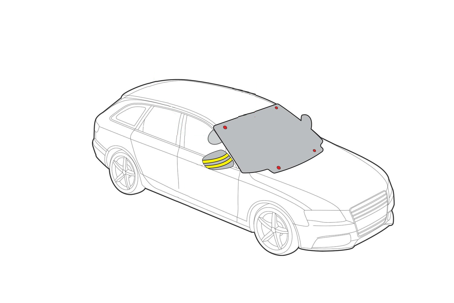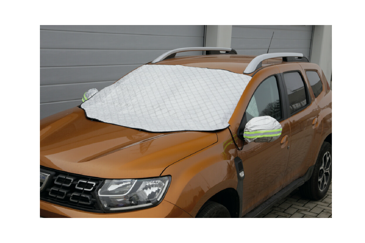 - Tato magnetická rohož na čelní sklo a boční zrcátka je celoroční potah o rozměrech 147/185x120 cm. Pasuje na většinu aut, v zimě zabraňuje námraze, v létě snižuje teplotu interiéru a chrání před prachem a listím po celou sezónu.