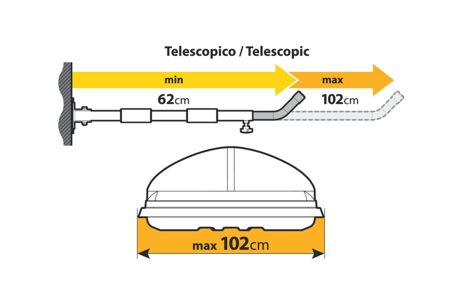 Nástěnné konzole pro střešní boxy TYP 2 slouží jako praktické stojany pro uložení boxu v vodorovné poloze . Teleskopické nastavení od 62 do 102 cm umožňuje rychlé přizpůsobení různým velikostem a tvarům boxů a úpravy lze provádět bez použití nářadí . Konstrukce z trubek o průměru 30/25 mm je pevná a stabilní a maximální nosnost 40 kg umožňuje bezpečné skladování většiny modelů. Ve složeném stavu se konzole připevní ke zdi , čímž šetří místo v garáži.