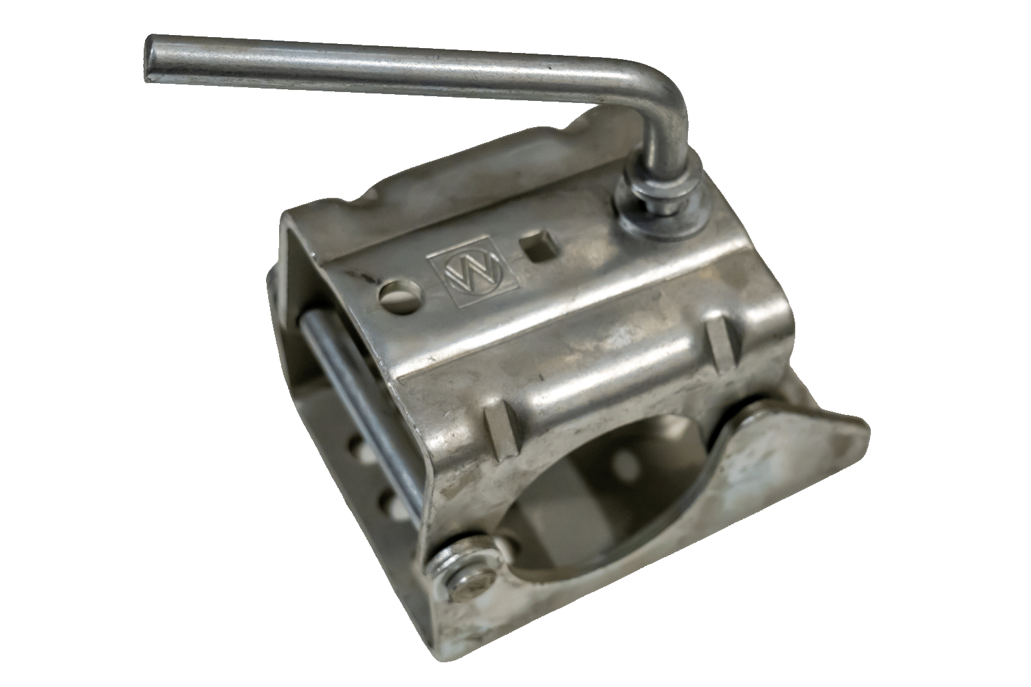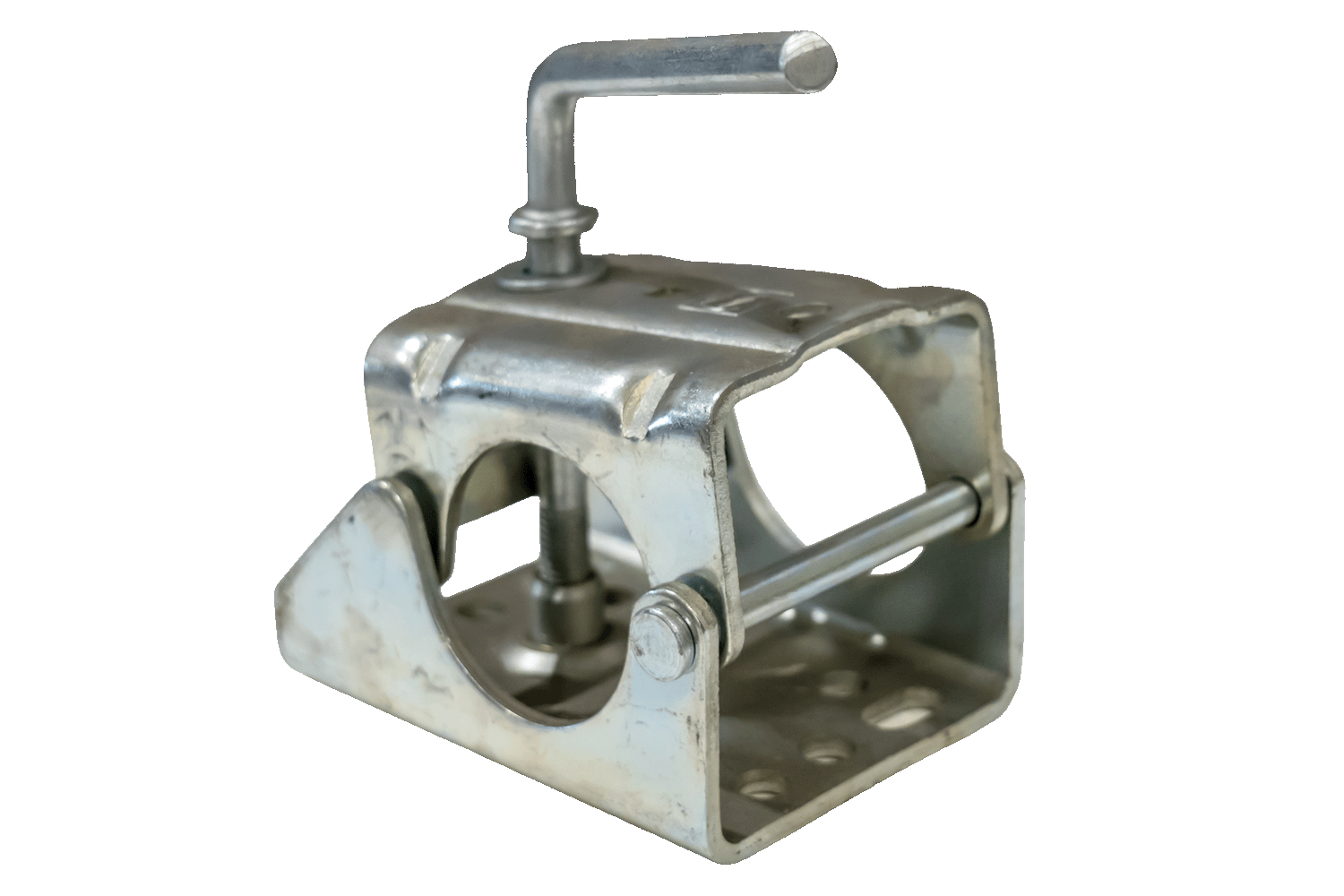 • ZÁSUVKA Univerzální svorka pro opěrné kolo o průměru 60 mm nebo pevnou podpěru pro přívěsy automobilů a plošinové přívěsy. Vyrobeno z vysoce odolného kovu, odolného vůči povětrnostním podmínkám a rzi. Svorka je vybavena stavěcím šroubem.