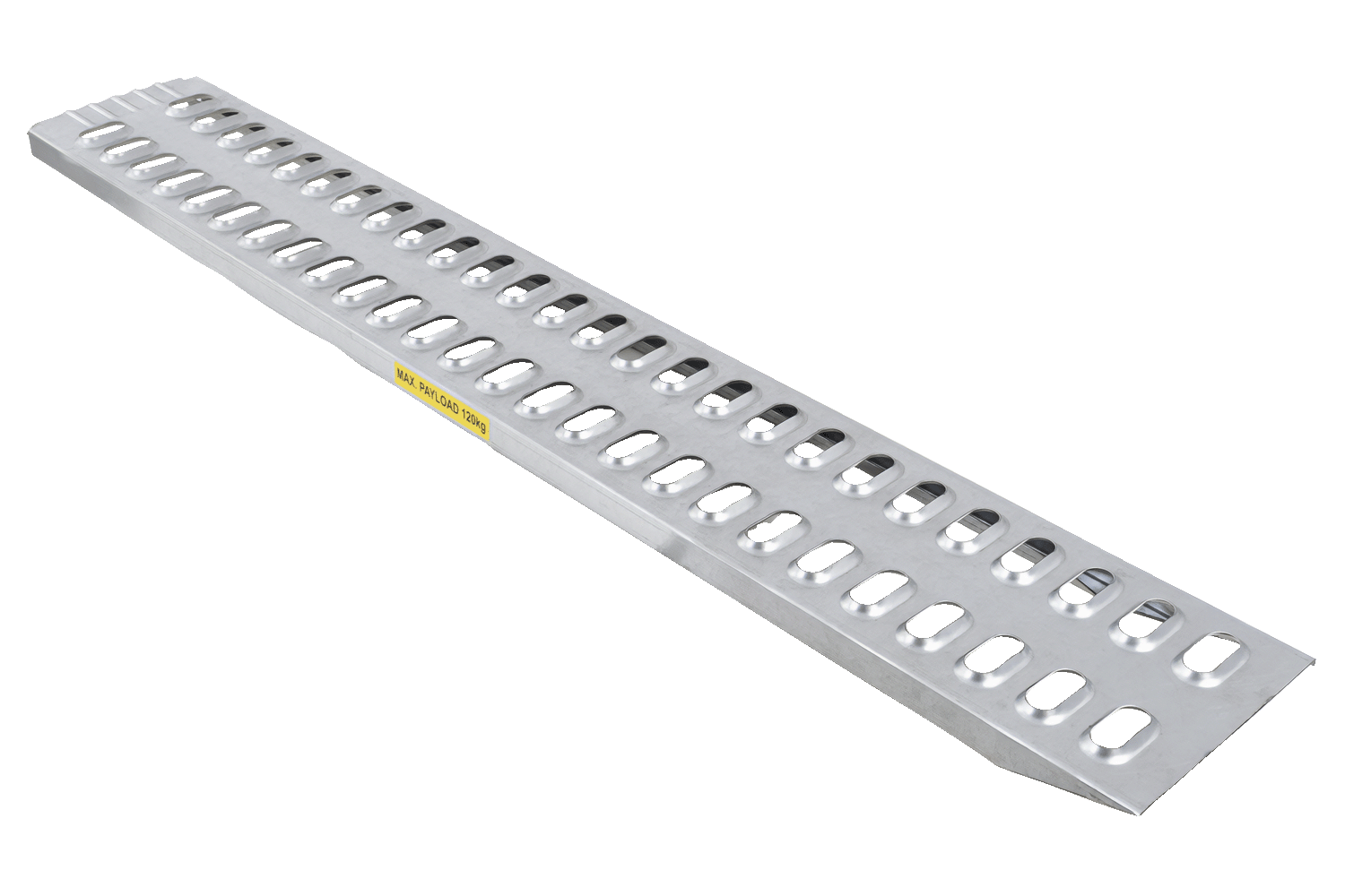 Perforovaný povrch zajišťuje dobrou trakci kol a zabraňuje prokluzování , čímž zvyšuje bezpečnost nakládání za všech podmínek – i s mokrým nebo znečištěným vybavením. Kompaktní délka ramp (150 cm) a relativně nízká hmotnost usnadňují jejich přepravu, skladování a provoz .