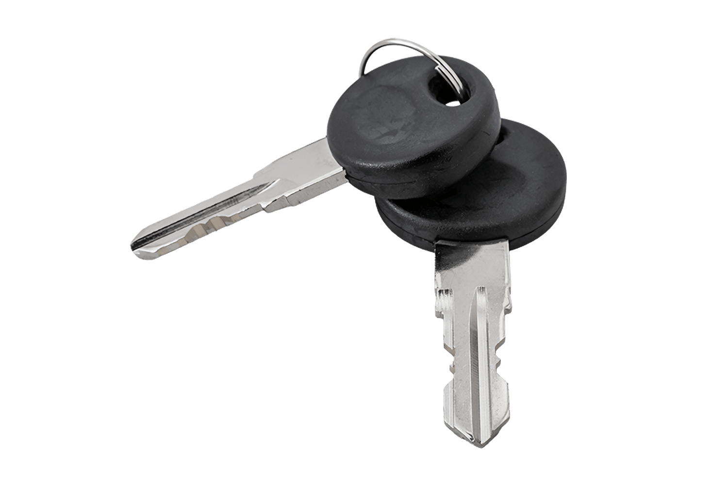 Bezpečnostní knoflík s klíči a zámek se stejným číslem pro kónický montážní systém v platformách pro jízdní kola s tažným zařízením Inter Pack.