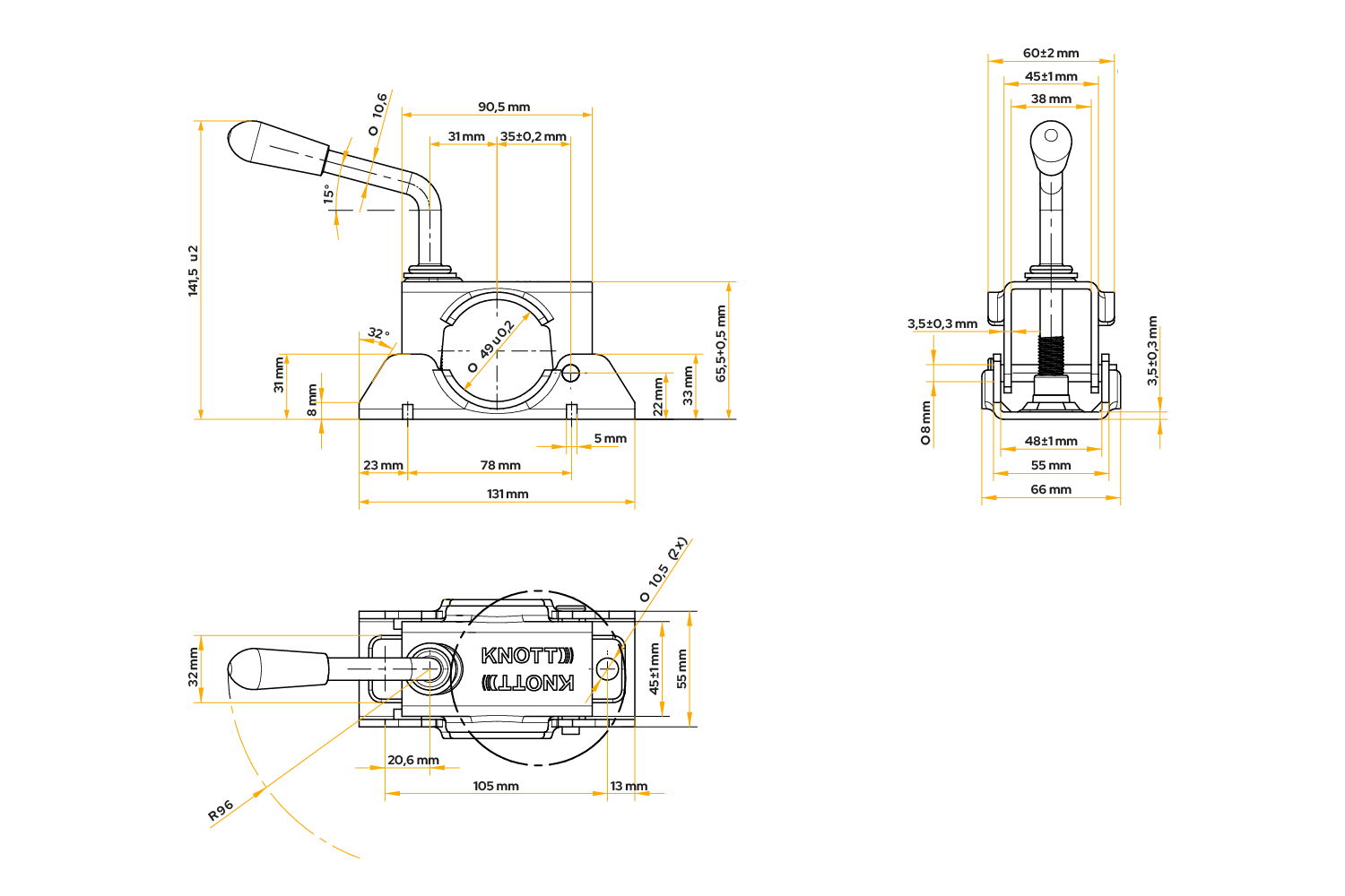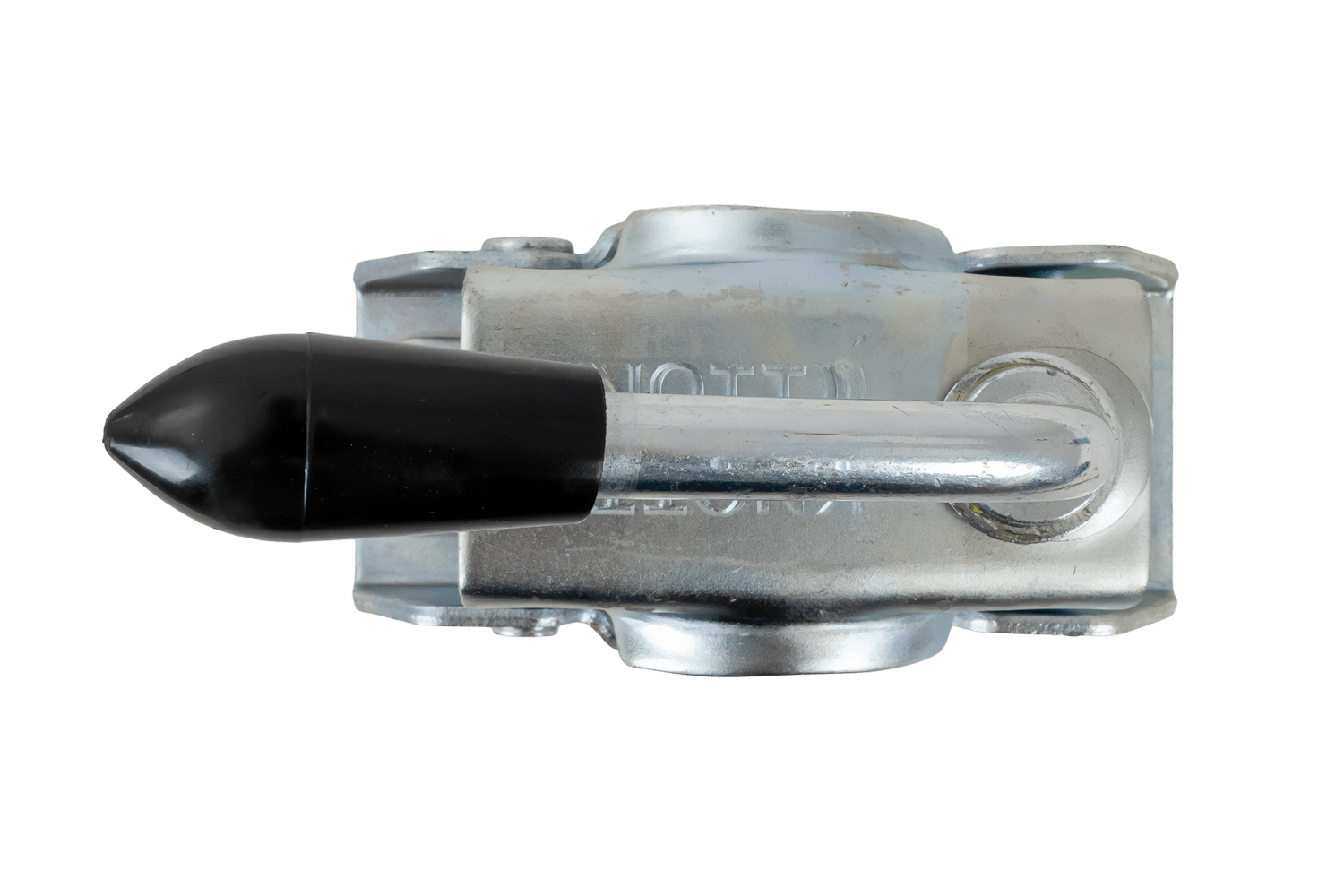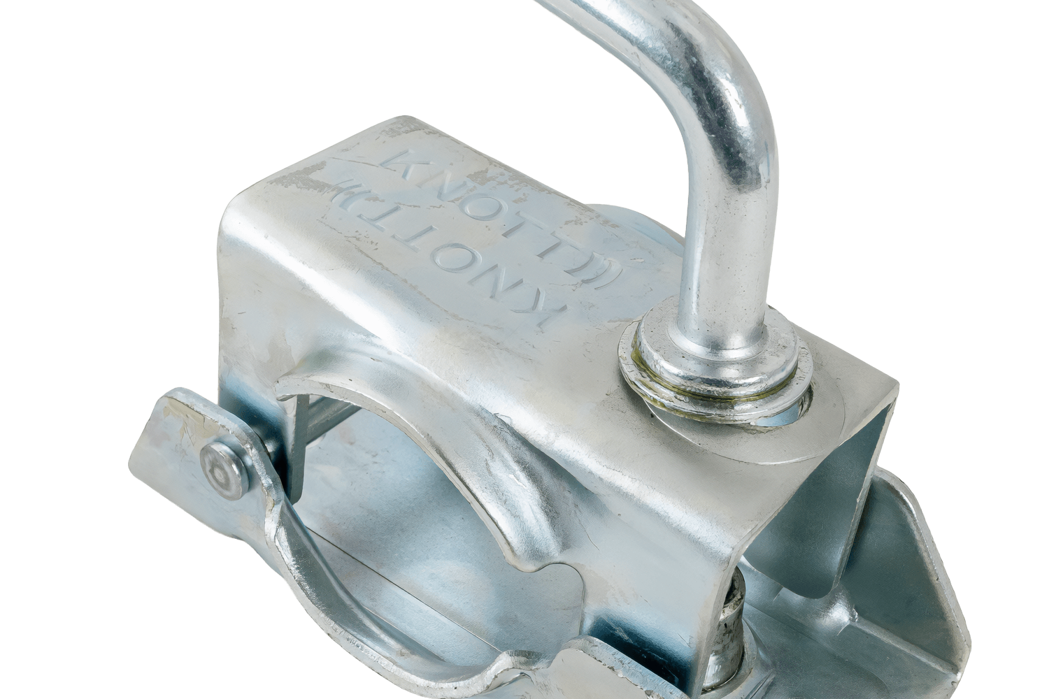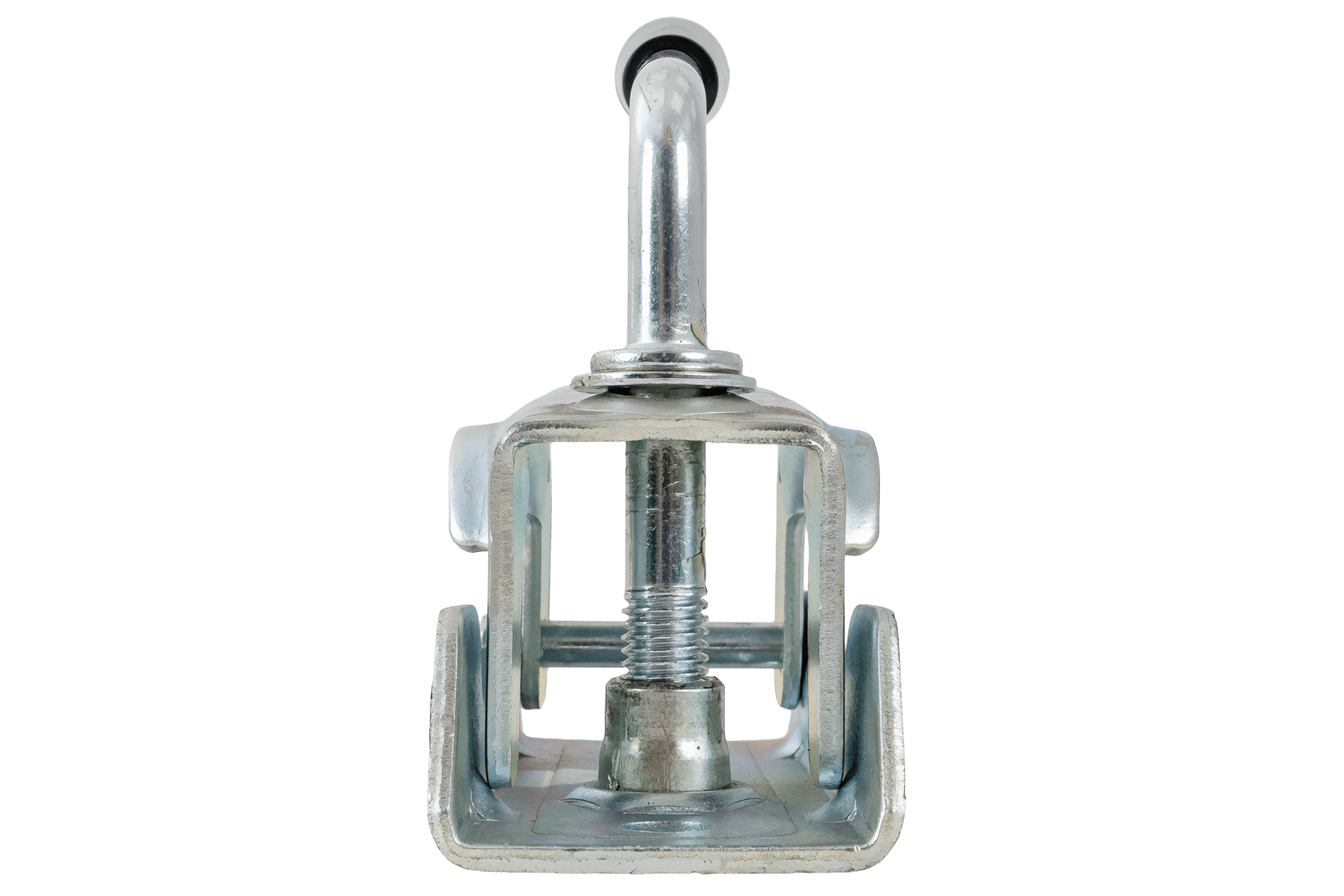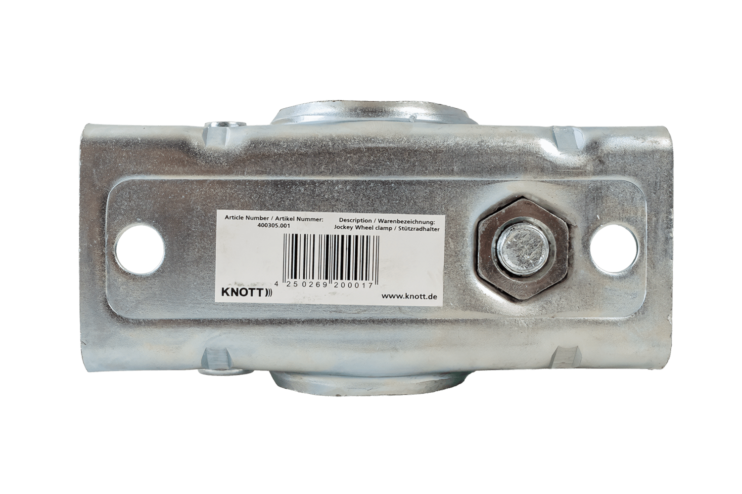 Svorka/svorka opěrných kol KNOTT 400305.001 se používá k montáži opěrných kol s průměrem trubky 48 mm . Ocelová základna má montážní otvory rozteč 105 mm a průměr 11 mm. umožňuje rychlé připevnění držáku k rámu nebo držáku oje. Přítlačná páka zajišťuje bezpečné uchycení trubky, snižuje prokluzování a vibrace a umožňuje rychlé nastavení výšky kola nebo jeho úplné vyjmutí pro přepravu či servis.