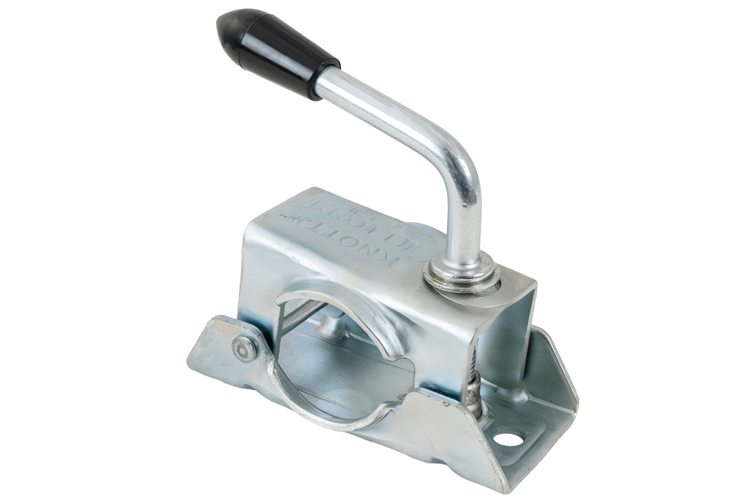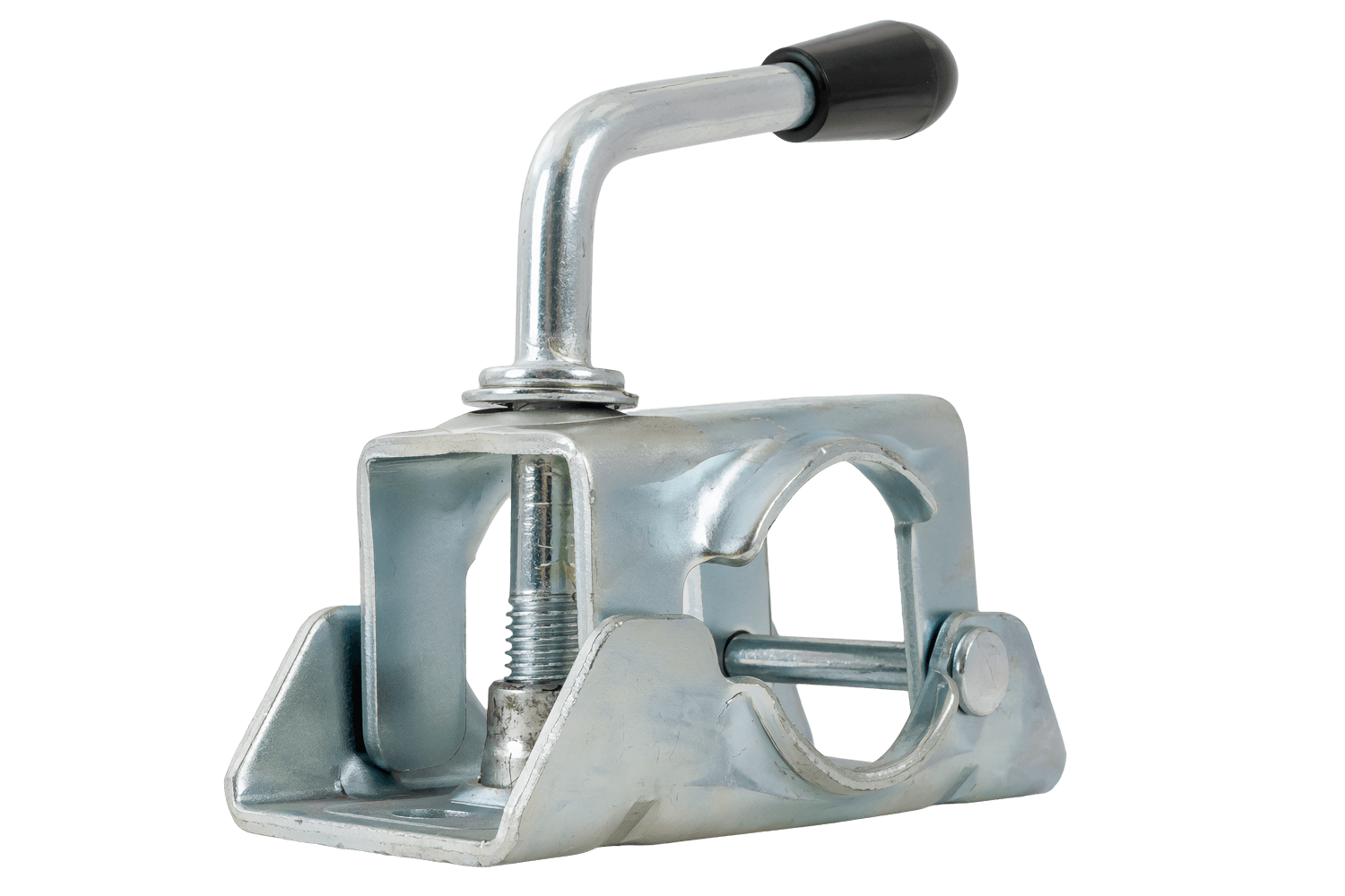 - Svorka opěrného kola 400305.001 s trubkou o průměru 48 mm. Přítlačná páka umožňuje rychlé zajištění, nastavení výšky nebo demontáž kola a stabilizaci přívěsu při parkování. Určeno pro nákladní přívěsy, přívěsy pro lodě a karavany.
