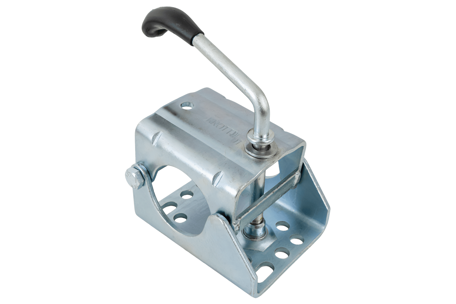 Svorka/svorka opěrných kol 4802879X od společnosti KNOTT se používá k montáži opěrných kol s trubkou o průměru 60 mm . Základna má montážní otvory rozteč 105x50 mm a 70x50 a průměr 11 mm umožňuje rychlé připevnění držáku k rámu nebo držáku oje. Přítlačná páka zajišťuje bezpečné uchycení trubky, snižuje prokluzování a vibrace a umožňuje rychlé nastavení výšky kola nebo jeho úplné vyjmutí pro přepravu či servis .