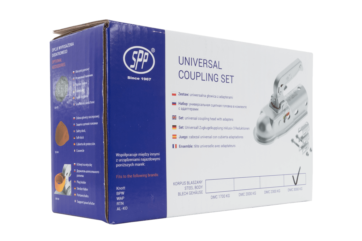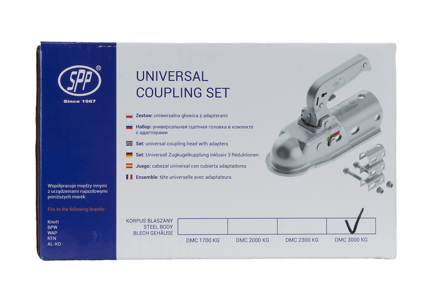 Kulová spojka BC-3000.1D-00-00 od společnosti STEELPRESS je robustní a spolehlivé řešení určené pro těžké přívěsy a valníky s celkovou hmotností až 3 000 kg . Spojovací hlava zajišťuje vysokou odolnost a odolnost vůči zatížení. Určeno pro montáž na rampové zařízení nebo na Oj s trubkovým profilem 35–50 mm zaručuje stabilní a bezpečné spojení s tažným vozidlem . Může se pochlubit přípustným svislým zatížením 150 kg , což umožňuje přepravu těžkých břemen při zachování optimálního rozložení hmotnosti. Kulová spojka je vybavena pojistným čepem , který zabraňuje náhodnému odpojení spojky během jízdy, a zvyšuje tak bezpečnost přepravy .