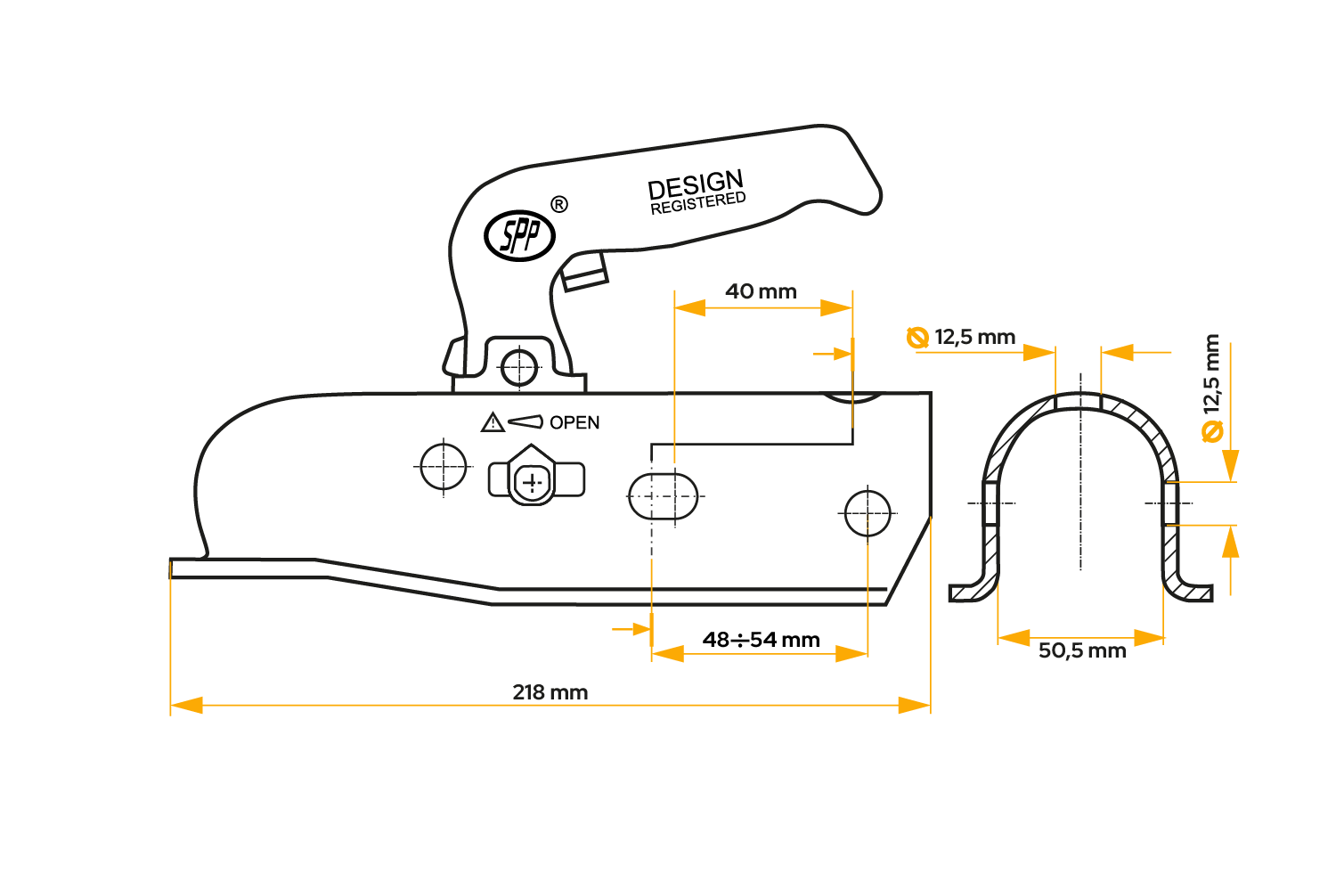Kulové tažné zařízení STEELPRESS BC-3000.1D-00-00+Z2 pro přívěs o hmotnosti 3000 kg s trubkovou ojí 35-50 mm