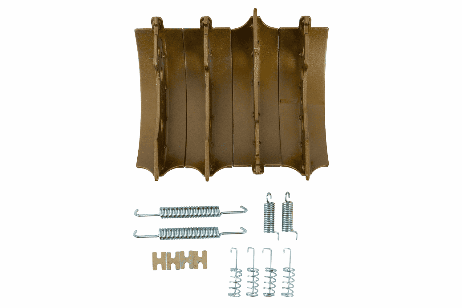 Brzdové čelisti jsou třecí prvky, které pracují uvnitř bubnu. Během brzdění se roztahují směrem ven a přitlačují své obložení k povrchu bubnu, čímž vytvářejí tření potřebné ke zpomalení . Používají se v přívěsech, strojích a užitkových vozidlech. Opotřebované čelisti (tenké obložení, praskliny, přehřívání, nerovnoměrné brzdění) by se měly vyměňovat v párech na nápravě spolu s pružinami a po kontrole stavu bubnů a samonastavovacího mechanismu, aby se obnovila plná účinnost a stabilita systému.