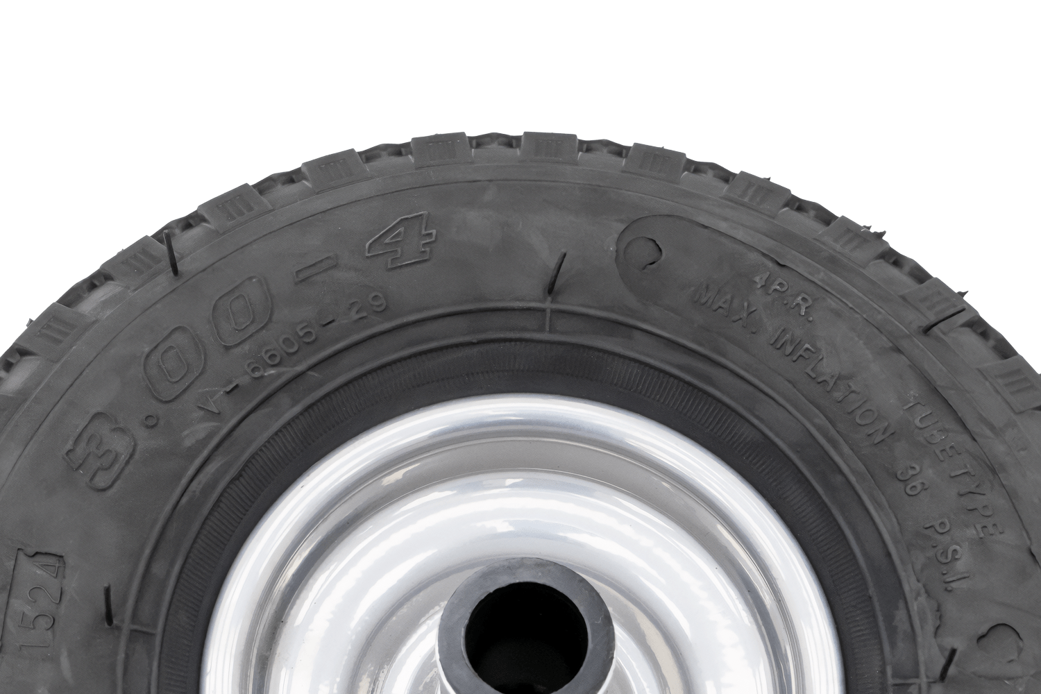 Jedná se o rezervní pneumatiku určenou pro opěrná kola přívěsu. Její plechový ráfek a plastová ložiska zajišťují lehký a korozivzdorný provoz, zatímco pneumatika účinně tlumí nerovnosti a usnadňuje plynulý pohyb přívěsu po příjezdové cestě, dvoře nebo v dílně.