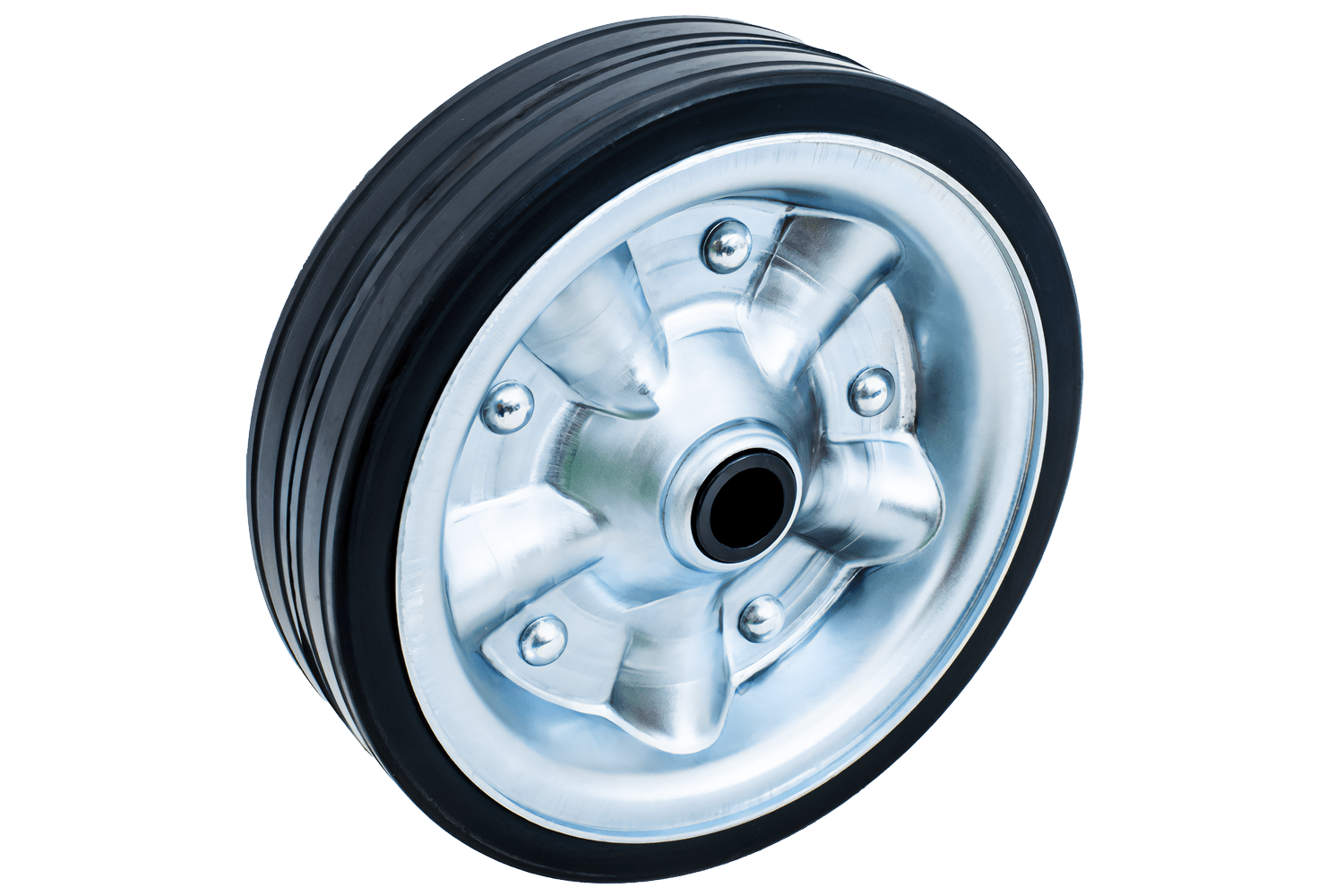 - Rezervní pneumatika z plné gumy 405641.001 pro opěrná kola přívěsu. Rozměry: 200×60 mm, náboj Ø20×58 mm, s plechovým ráfkem. Bezúdržbová a odolná proti propíchnutí – ideální pro podepření oje a jízdu s přívěsem na dvoře, příjezdové cestě nebo v dílně.