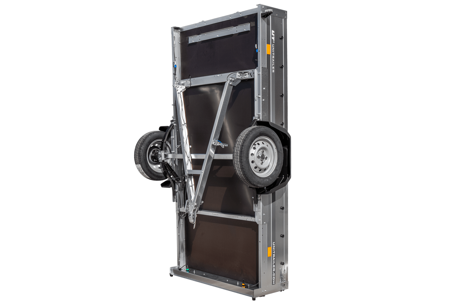 Šetřete místo. Sklápěcí oj je užitečná pro vykládání, ale také umožňuje vertikální skladování přívěsu.