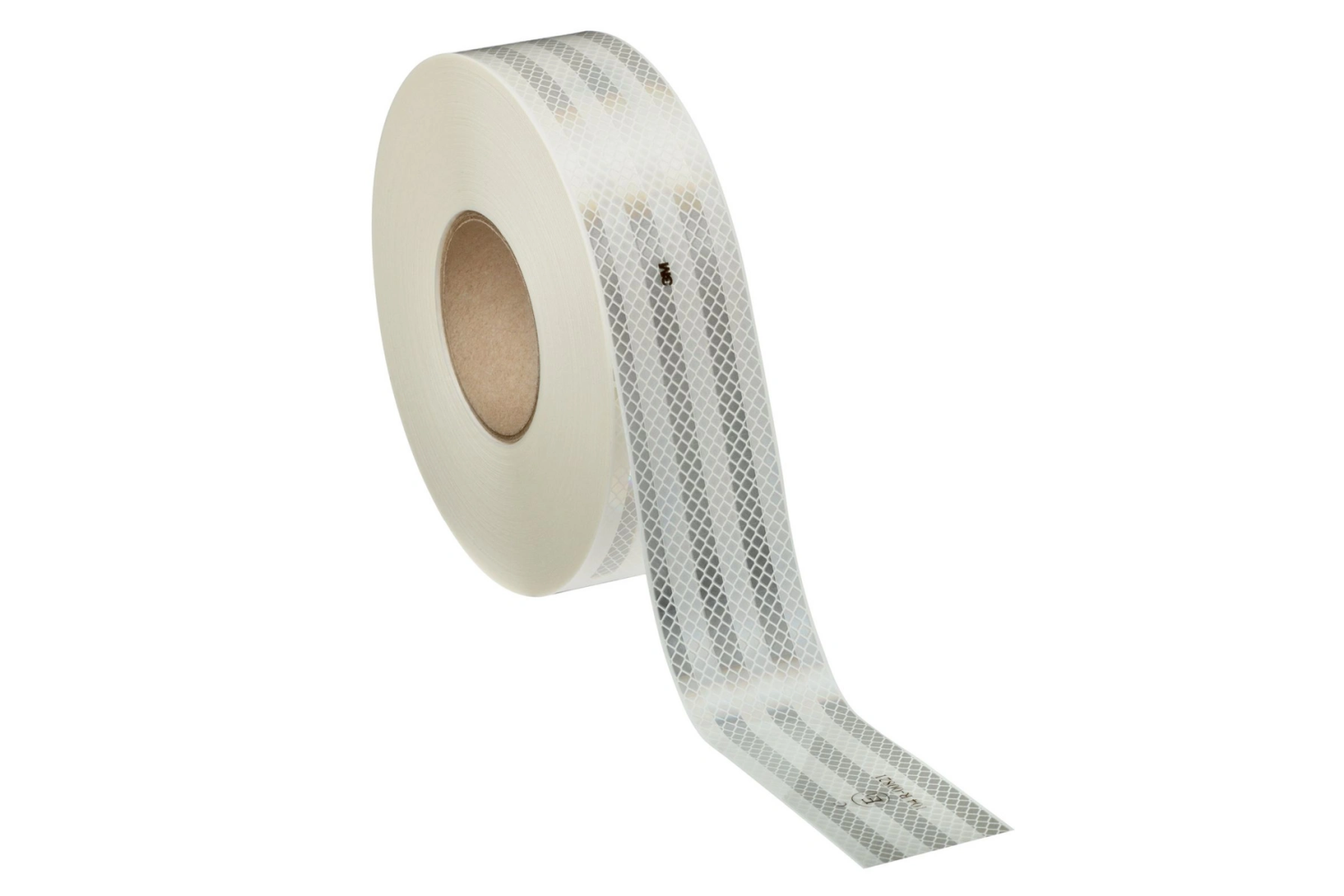 Bílá reflexní páska 3M Scotchlite Diamond Grade 983, šířka 55 mm (5,5 cm) a délka 50 m , je vysoce kvalitní řešení určené pro konturové značení nákladních vozidel , přívěsů a velkých strojů. Je určena pro aplikaci na pevné povrchy a poskytuje výjimečnou viditelnost vozidel ve dne i v noci.