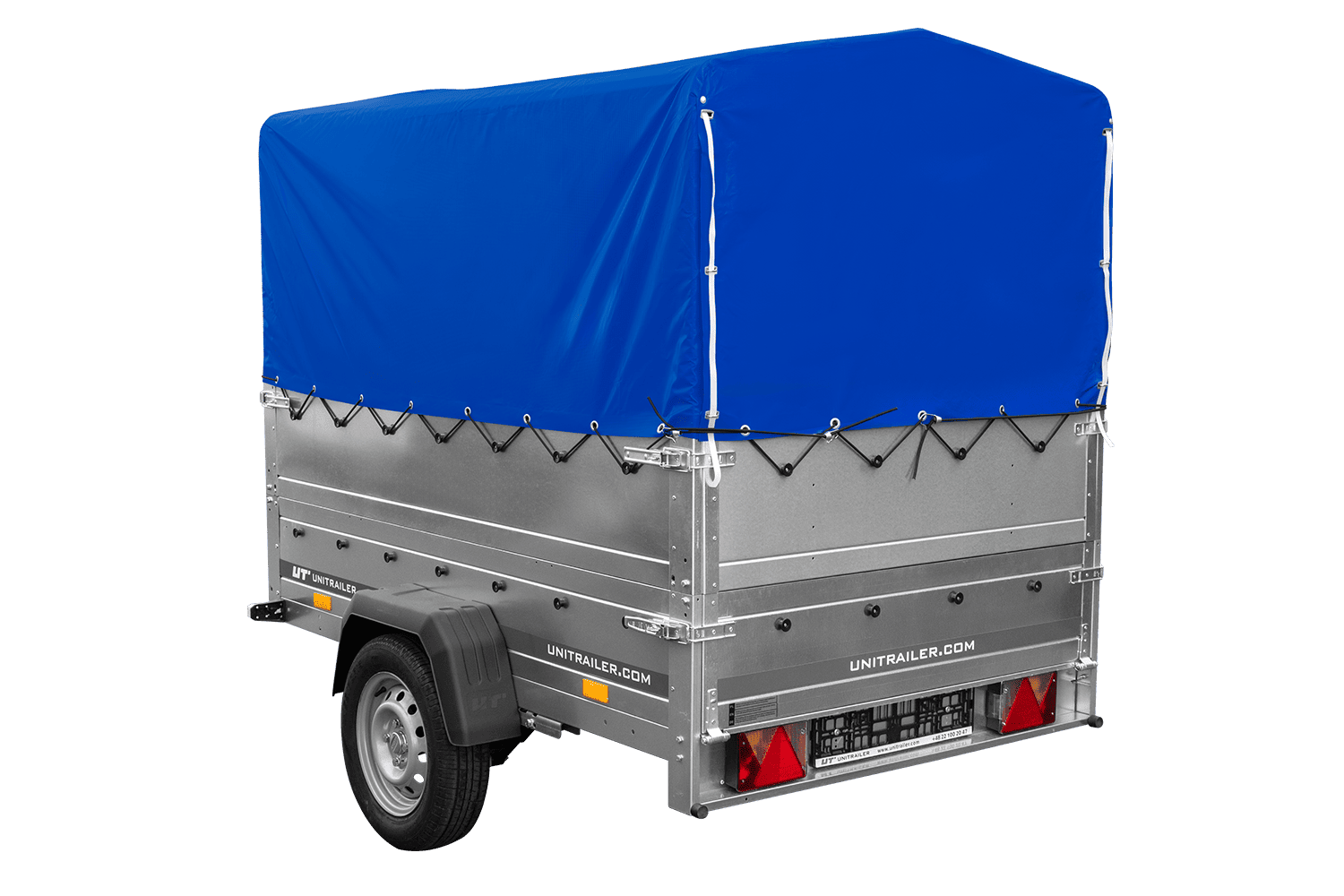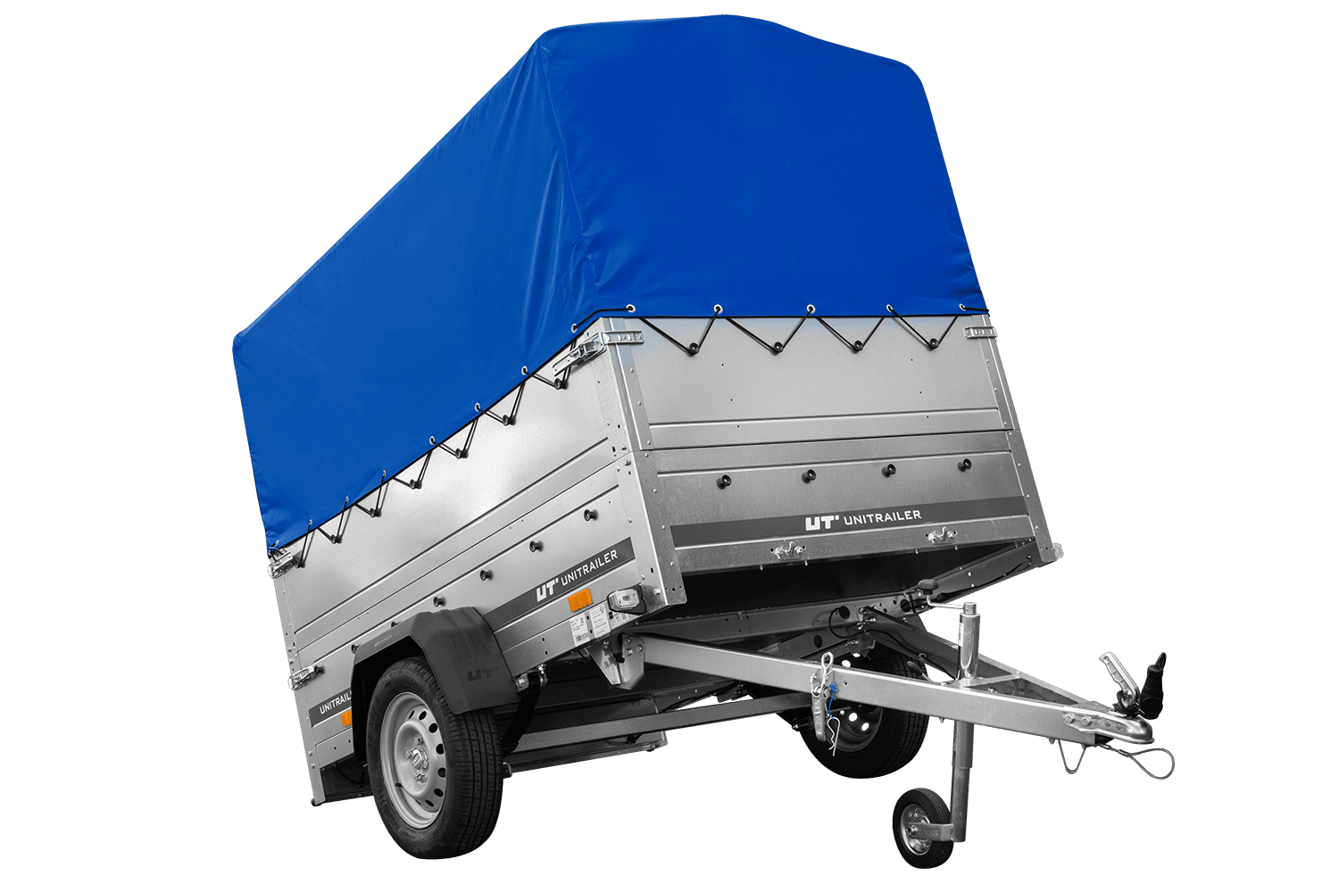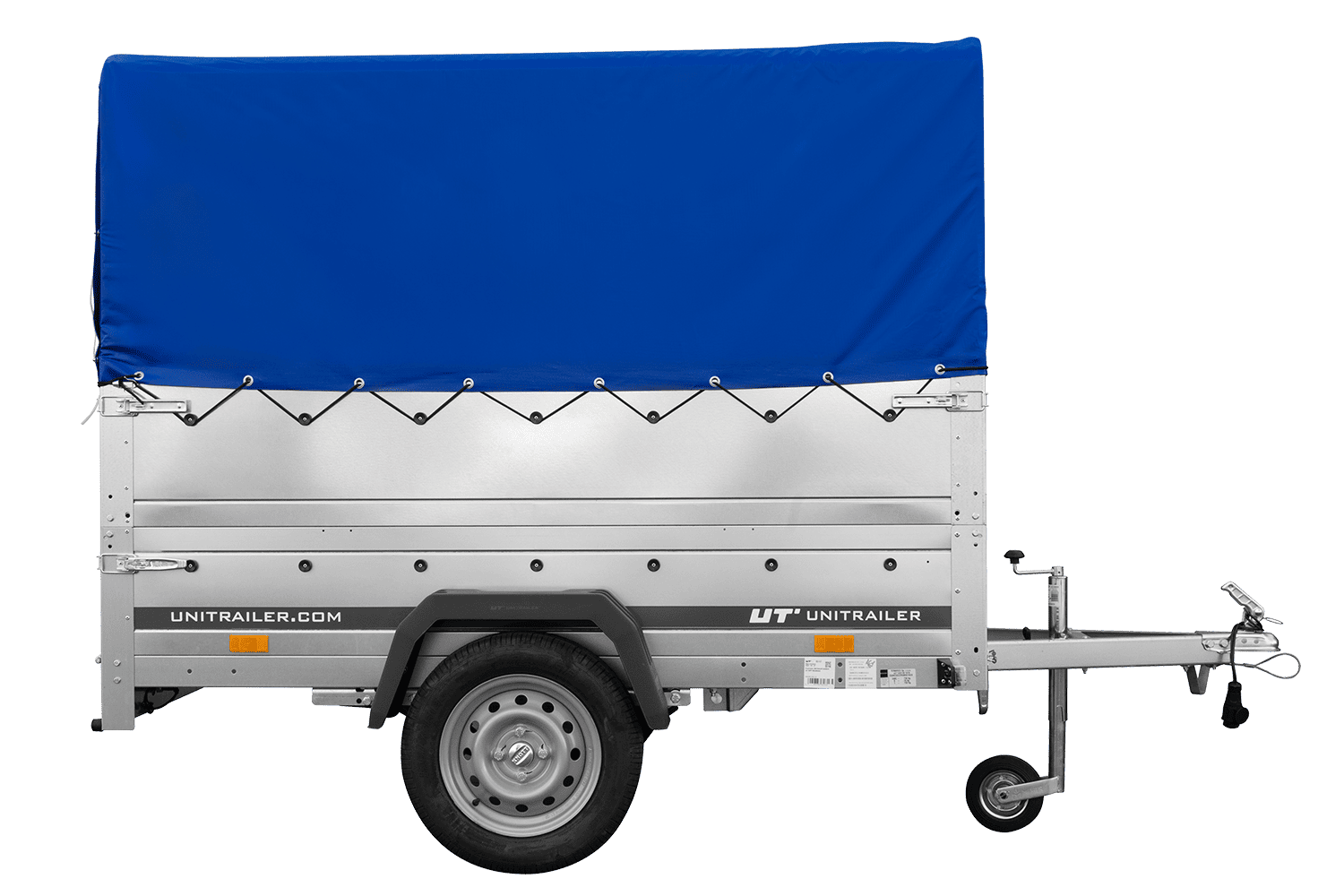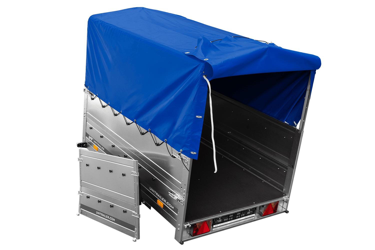 Lehký přívěs na pružinách 200x125 UNITRAILER GARDEN 201/R KIPP s bočnicemi BIS, rámem H-800 a modrým krytem