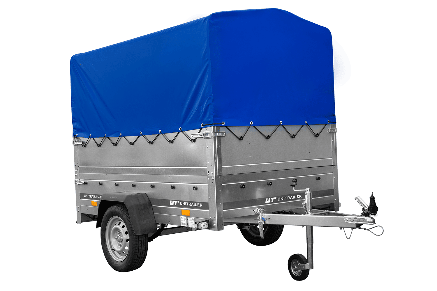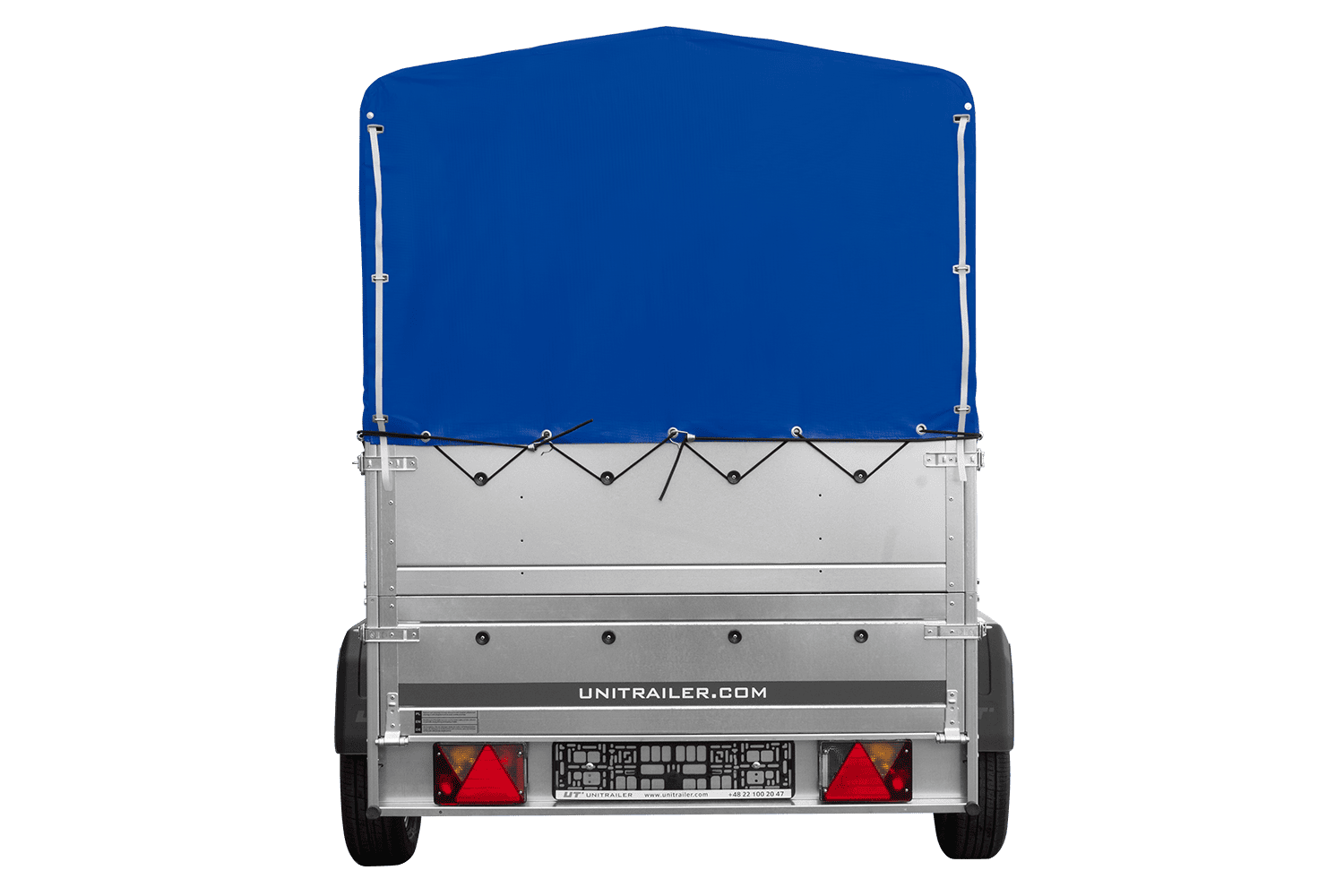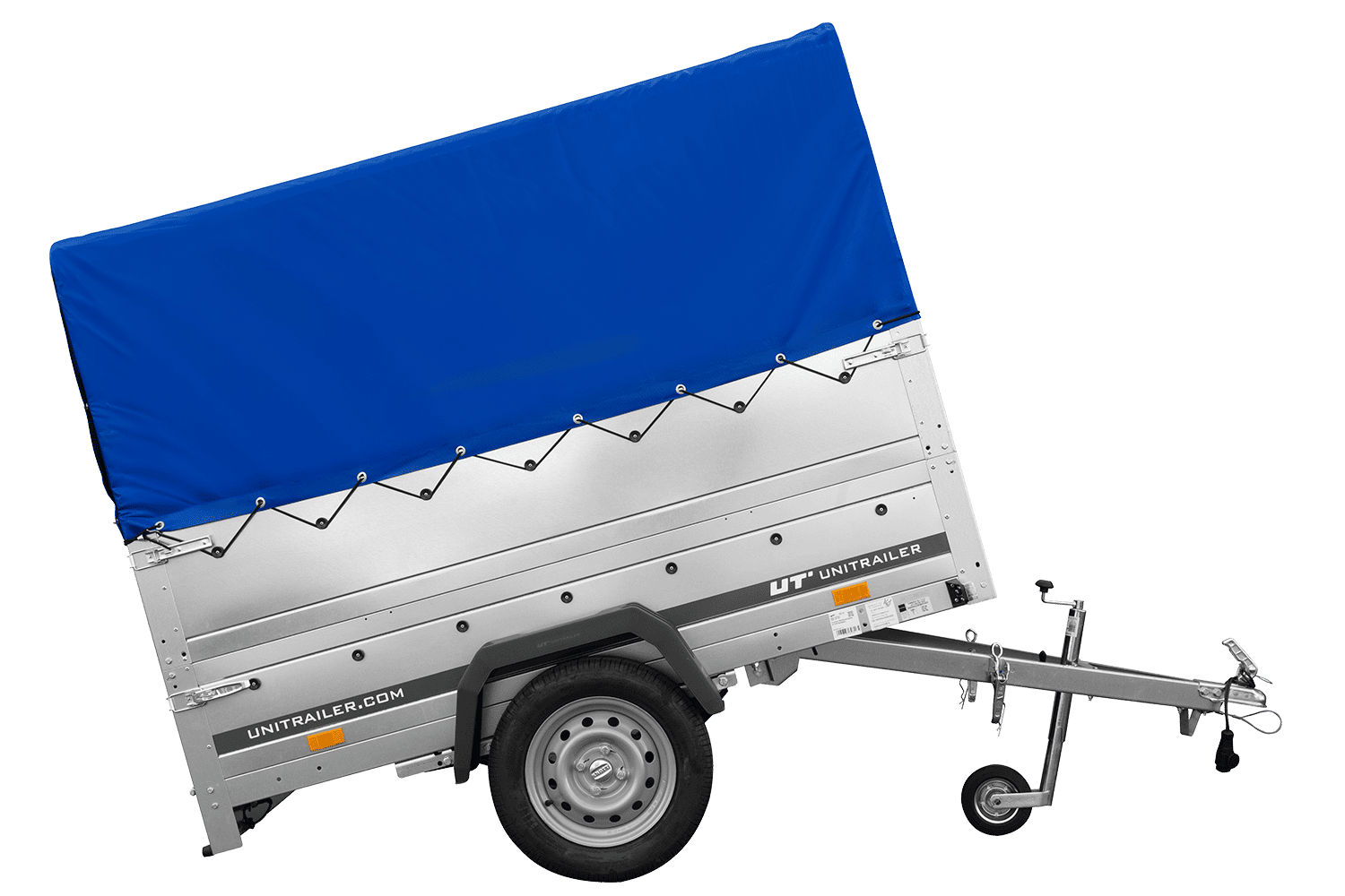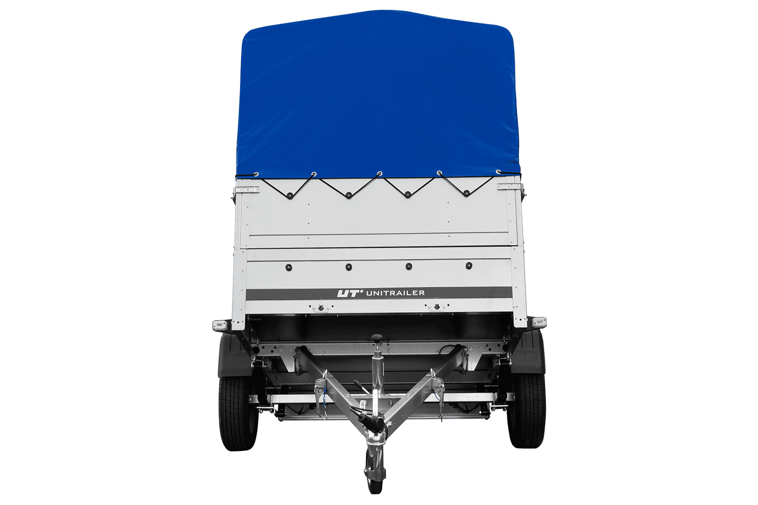 Lehký přívěs na pružinách 200x125 UNITRAILER GARDEN 201/R KIPP s bočnicemi BIS, rámem H-800 a modrým krytem