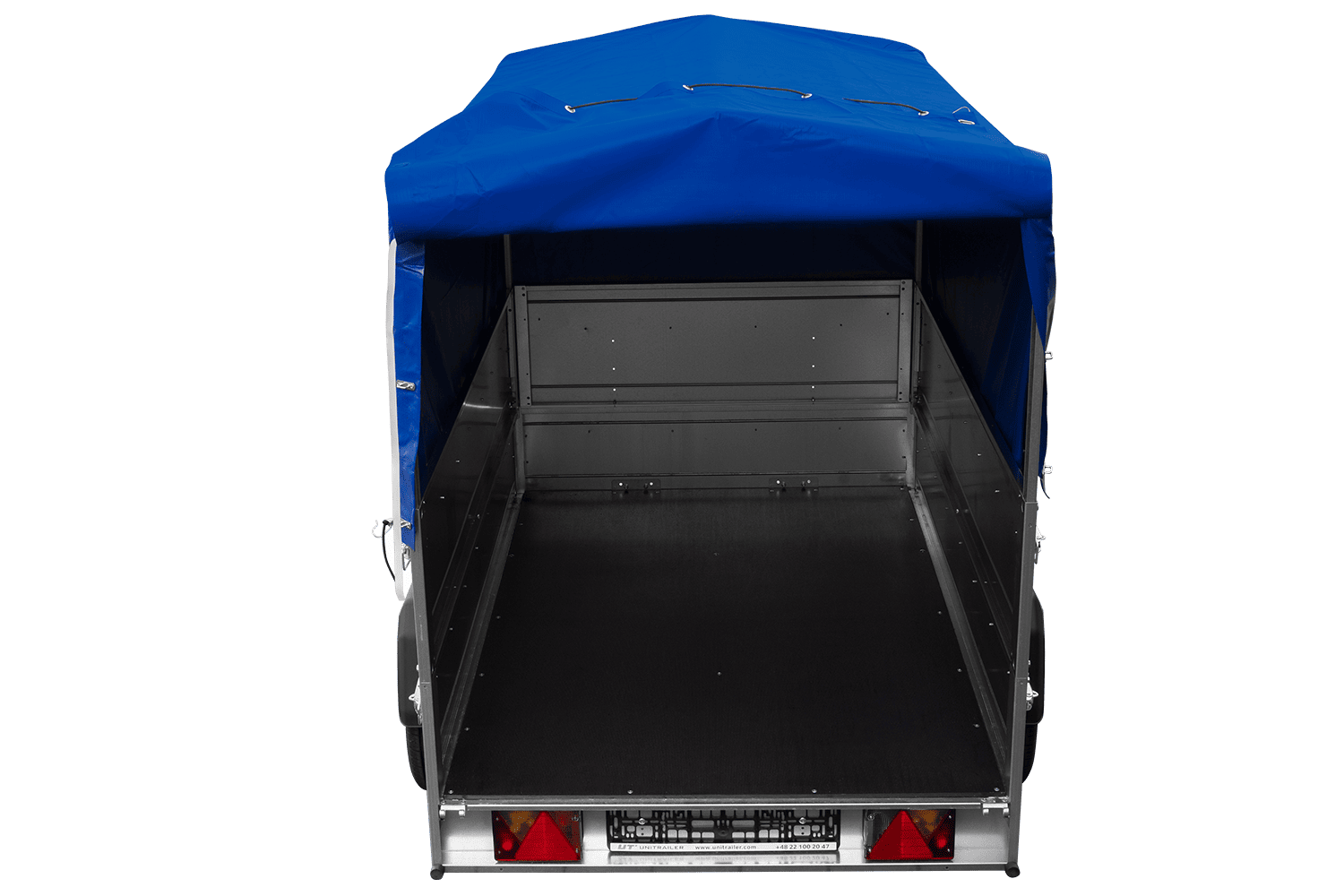 Rám zobrazeného přívěsu je v nejvyšším bodě vysoký 80 cm a má sedlovou střechu pro lepší odvod vody a sněhu během jízdy. Je vyroben z velmi pevných ocelových nosníků chráněných proti korozi pozinkováním. Rám je sestaven pomocí šroubů, které jsou součástí sady. Plachta je vyrobena z tlustého, vodotěsného materiálu, takže ani dlouhodobý déšť nezpůsobí její prosakování. Součástí sady je také elastická šňůra s háčky pro rychlé napnutí. Plachta má otevírací zadní část pro snadné nakládání a vykládání zboží z přívěsu. Přídavné boční panely BIS výrazně zvětšují nákladový prostor přívěsu, což umožňuje bezpečnou přepravu většího množství zboží nebo objemných materiálů. Díky nim je celková výška sady s rámem H-800 a modrou plachtou ohromujících 150 cm , což poskytuje mimořádně velkou užitnou kapacitu. Stejně jako zbytek přívěsu je i plachta vyrobena z pozinkované oceli odolné proti korozi, což zajišťuje dlouhodobou životnost a esteticky příjemný vzhled. V kombinaci s pevným rámem a pevnou, vodotěsnou plachtou vytvářejí všestrannou a pevnou přepravní sadu, která je ideální jak pro každodenní domácí použití, tak pro profesionální aplikace.