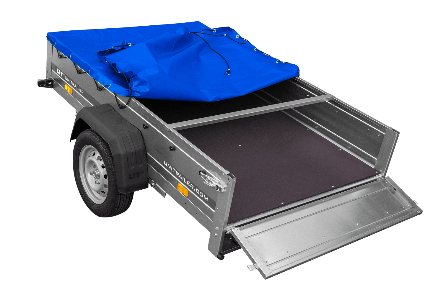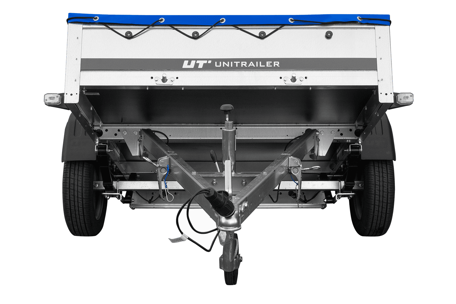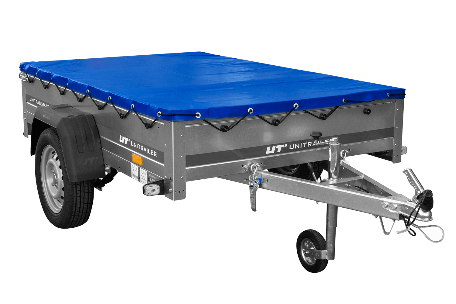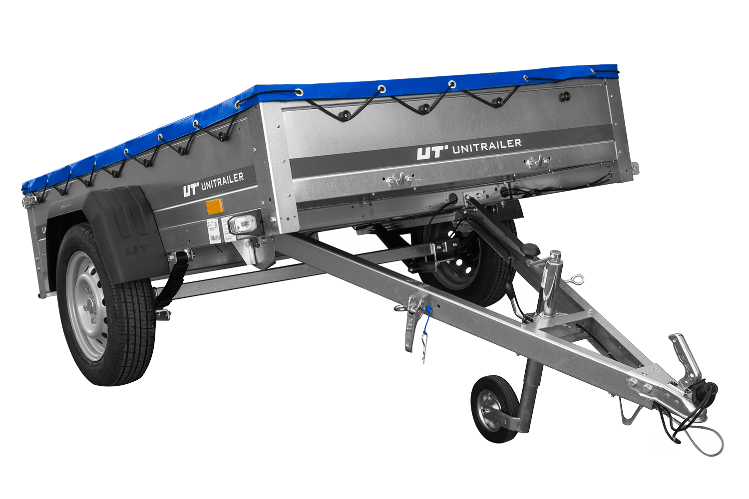 Přívěs za auto na pružinách 200x125 UNITRAILER GARDEN 201/R KIPP s rámem H-0 a modrým krytem